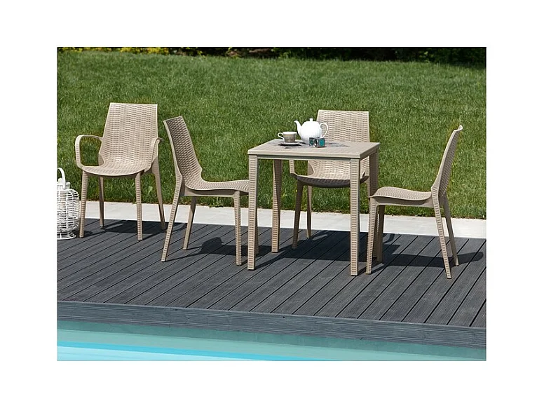 Salon de jardin-Table de jardin + 2 bancs Plastique Marron GFDF22665