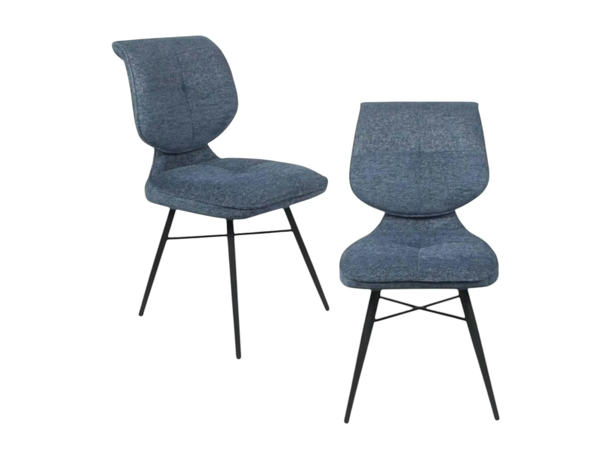 Chaise tissu bleu à dossier double (lot de 2) LIGURIE
