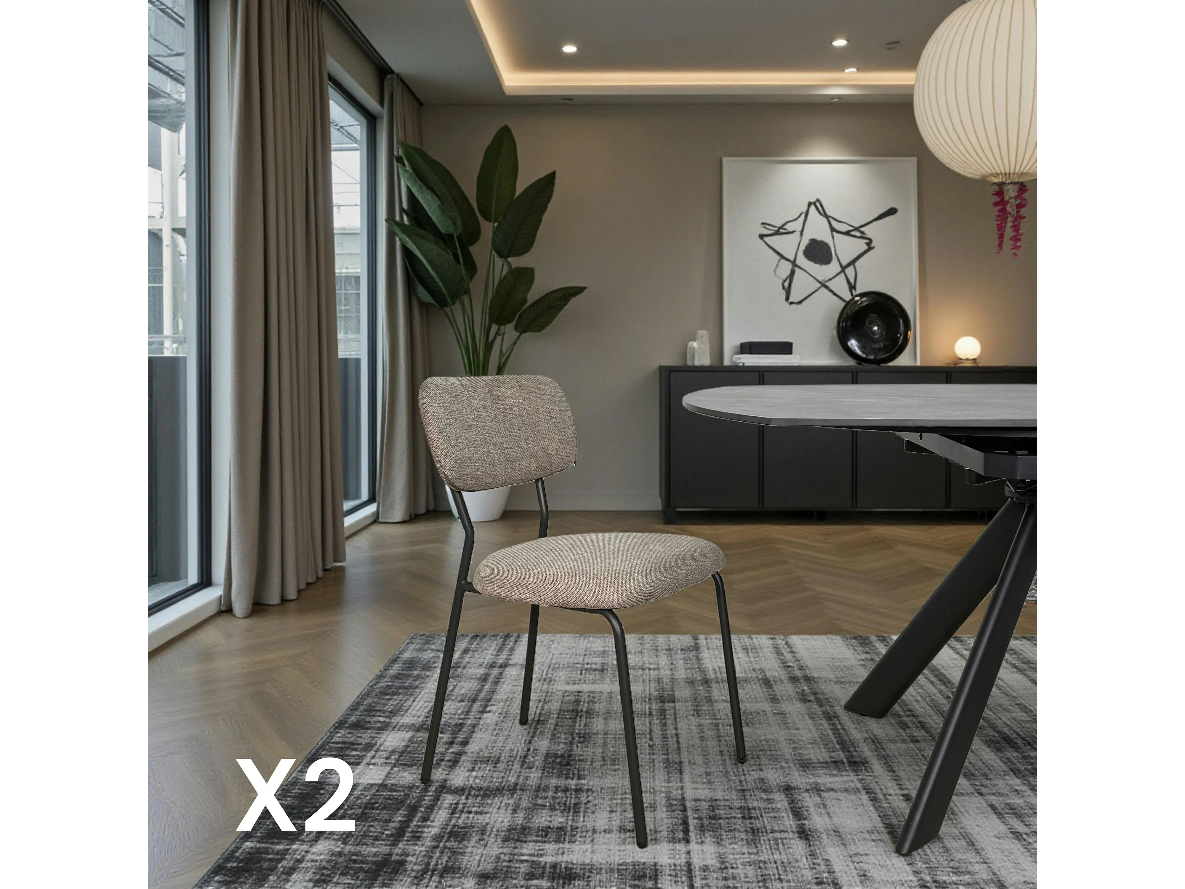 Chaise tissu brun taupe style écolier (lot de 2) MALANG