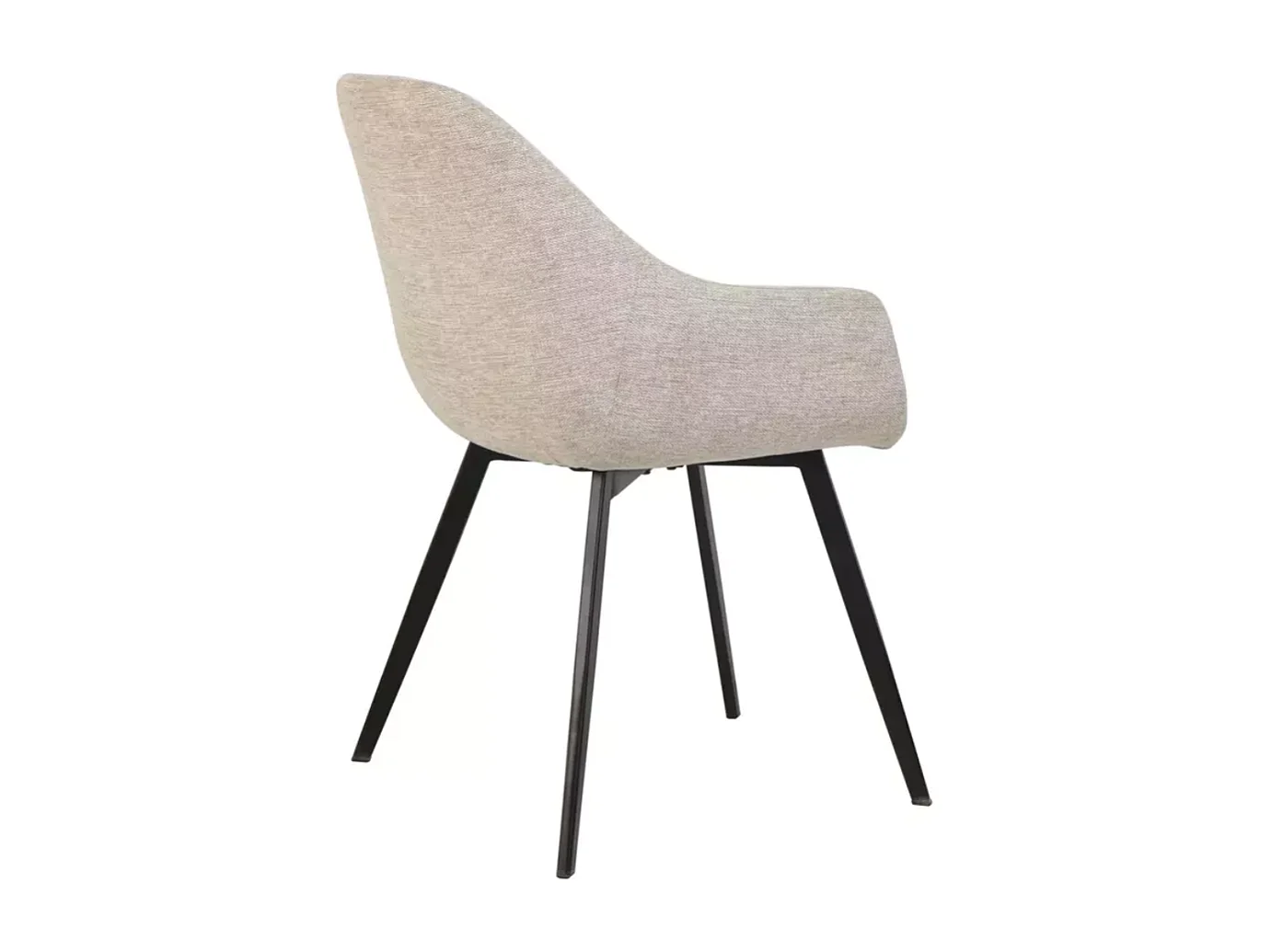 Chaise pivotante en tissu beige et pied en métal noir Mirka
