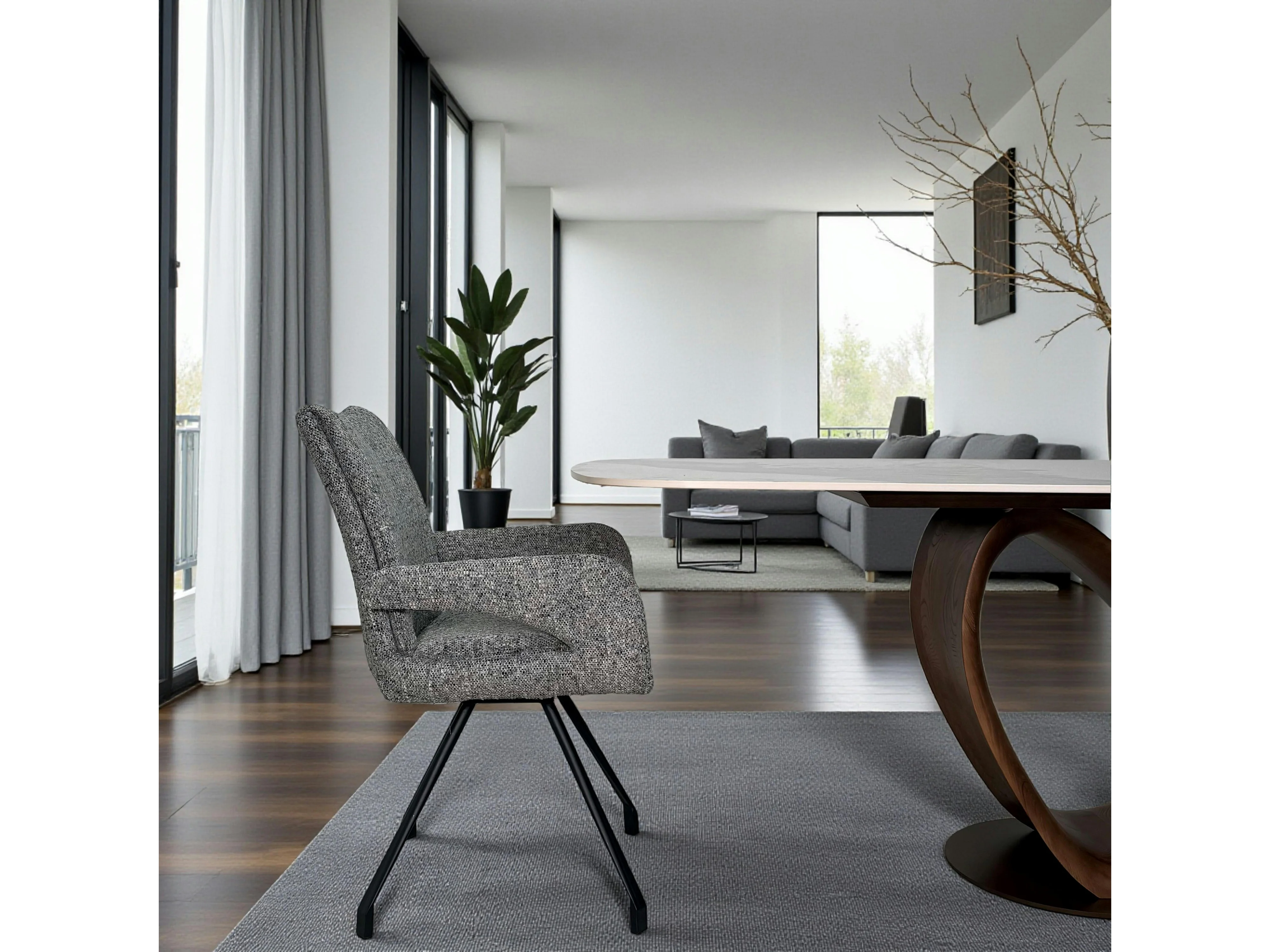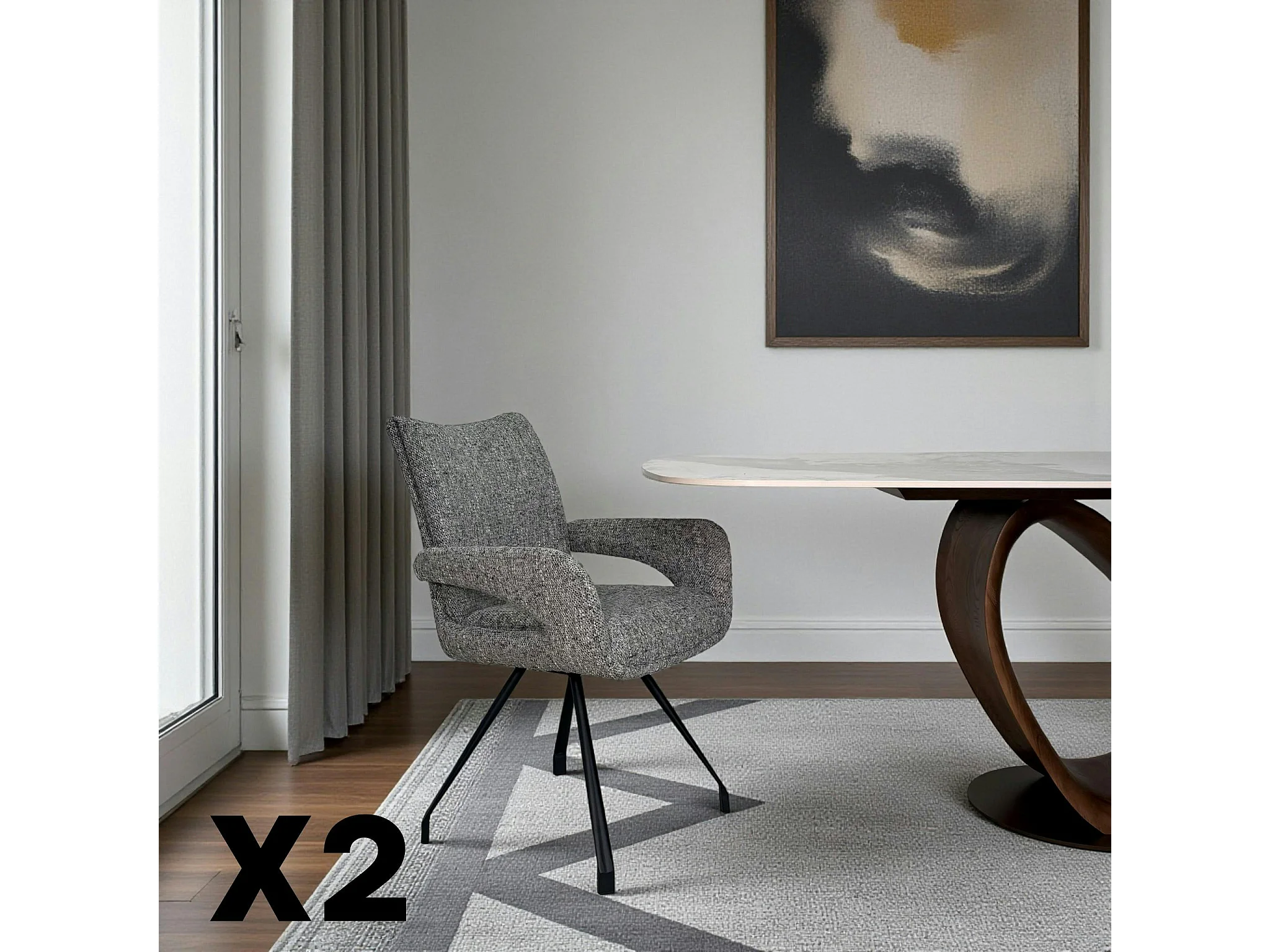 Chaise tissu gris chiné accoudoirs larges (lot de 2) LIGURIE