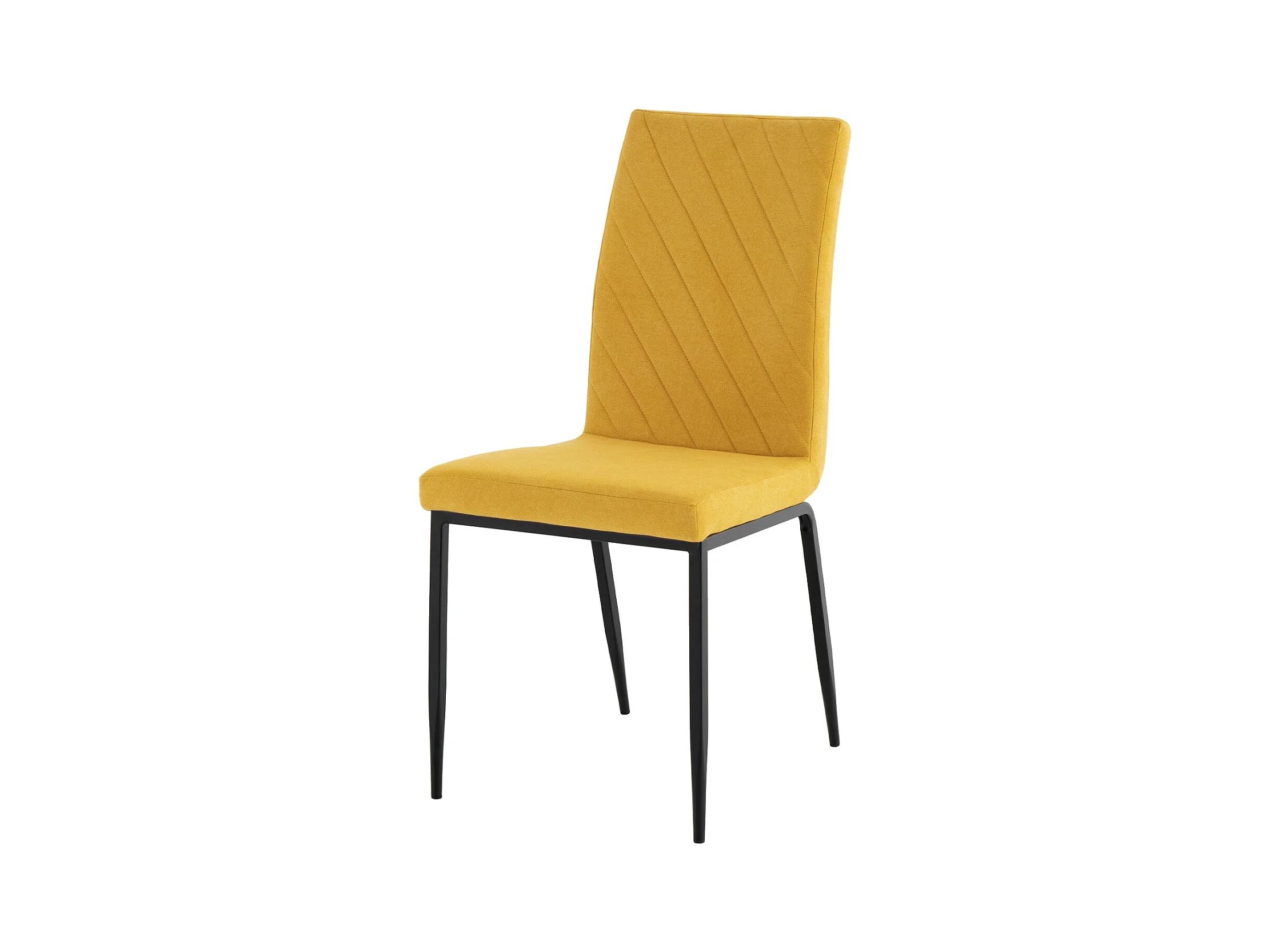 Chaise confort Teva – Tissu matelassé et pieds métal noir pour intérieur moderne-Couleur Jaune moutarde