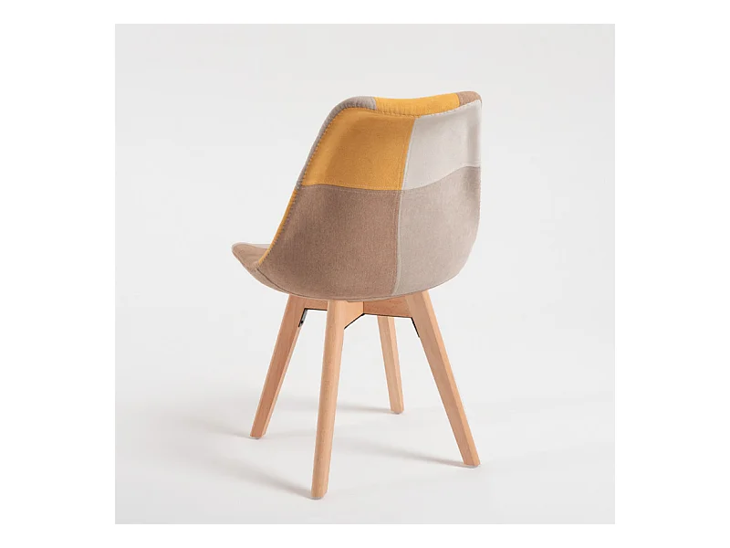 Chaise tissu patchwork jaune et pieds hêtre massif clair Paoly