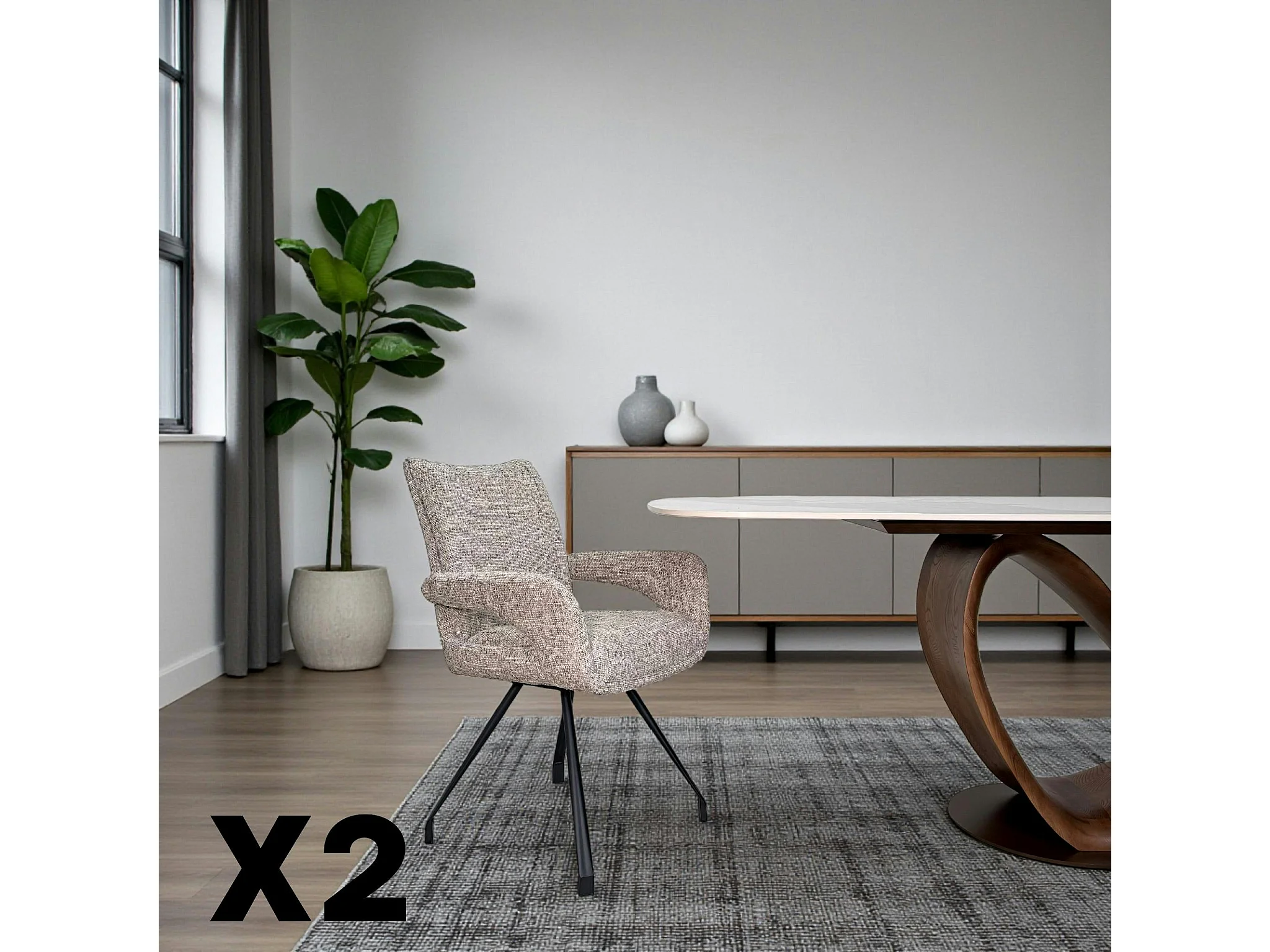 Chaise tissu taupe chiné accoudoirs larges (lot de 2) LIGURIE