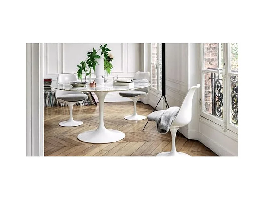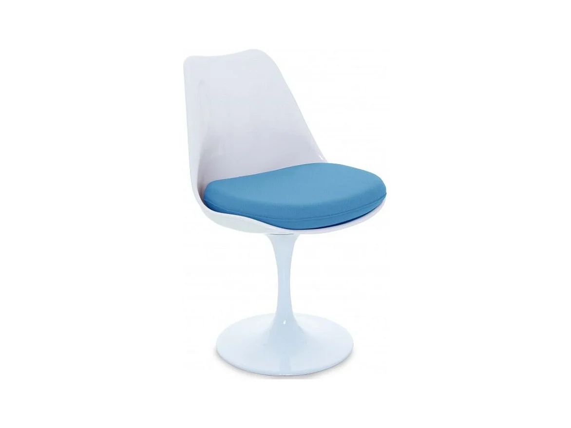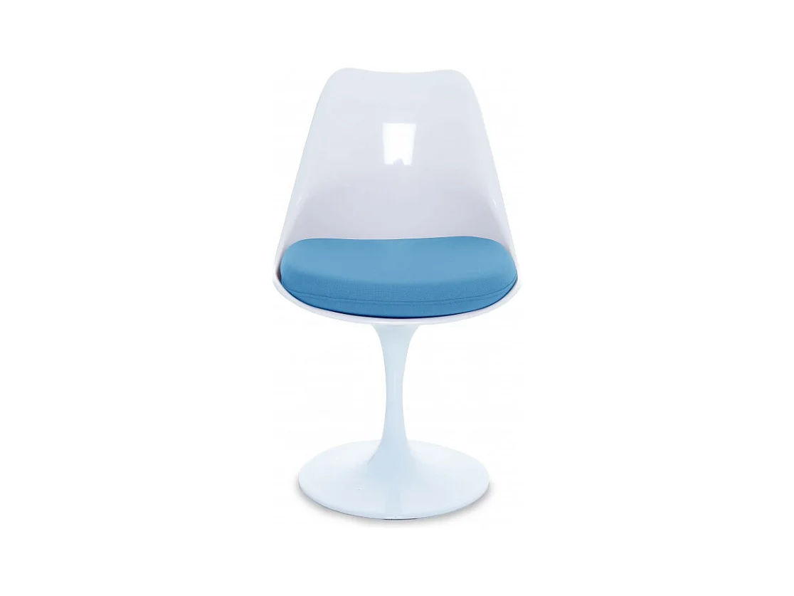 Chaise Tulipo pivotante blanc brillant avec coussin - Design-Couleur Bleu clair