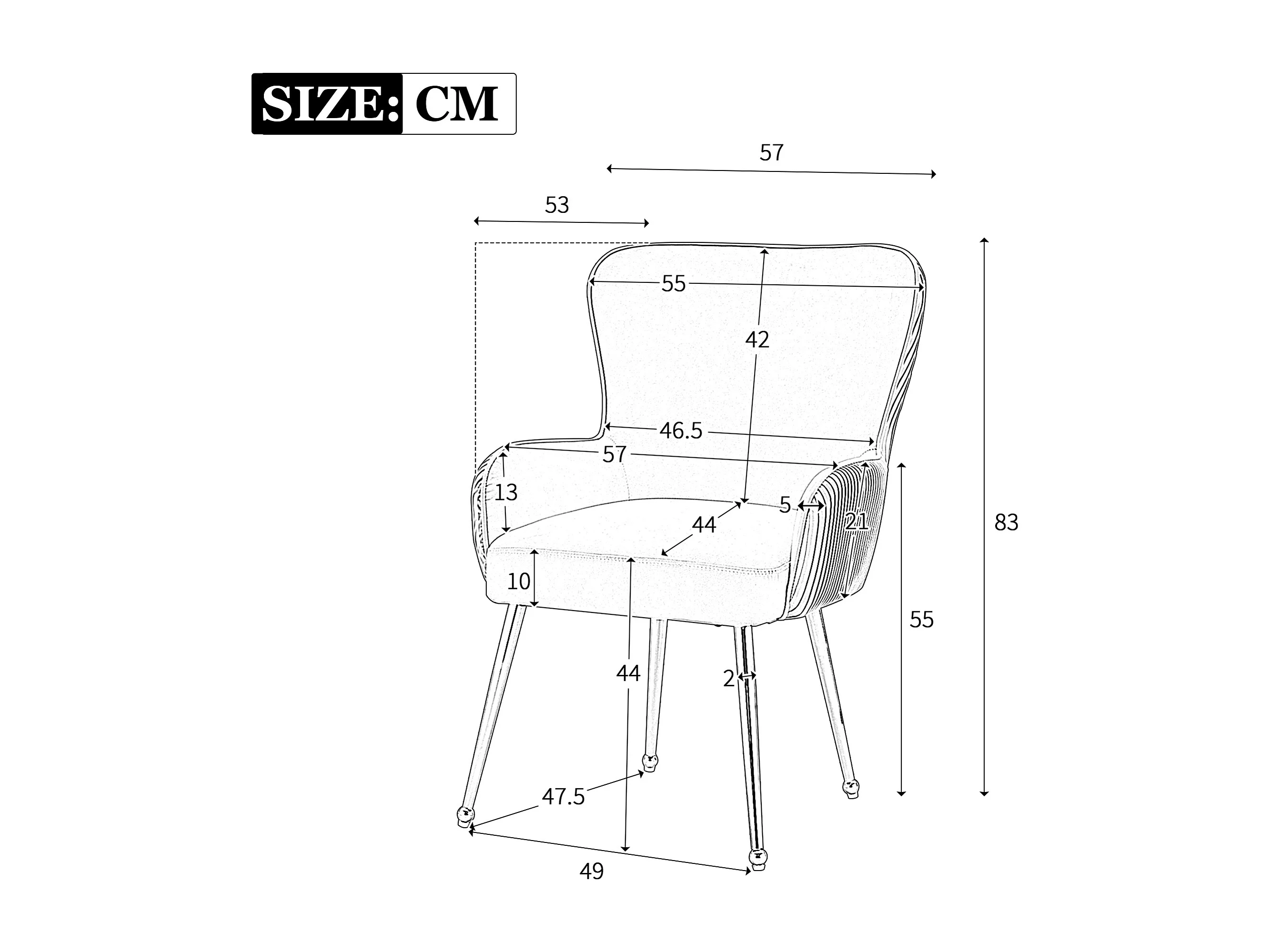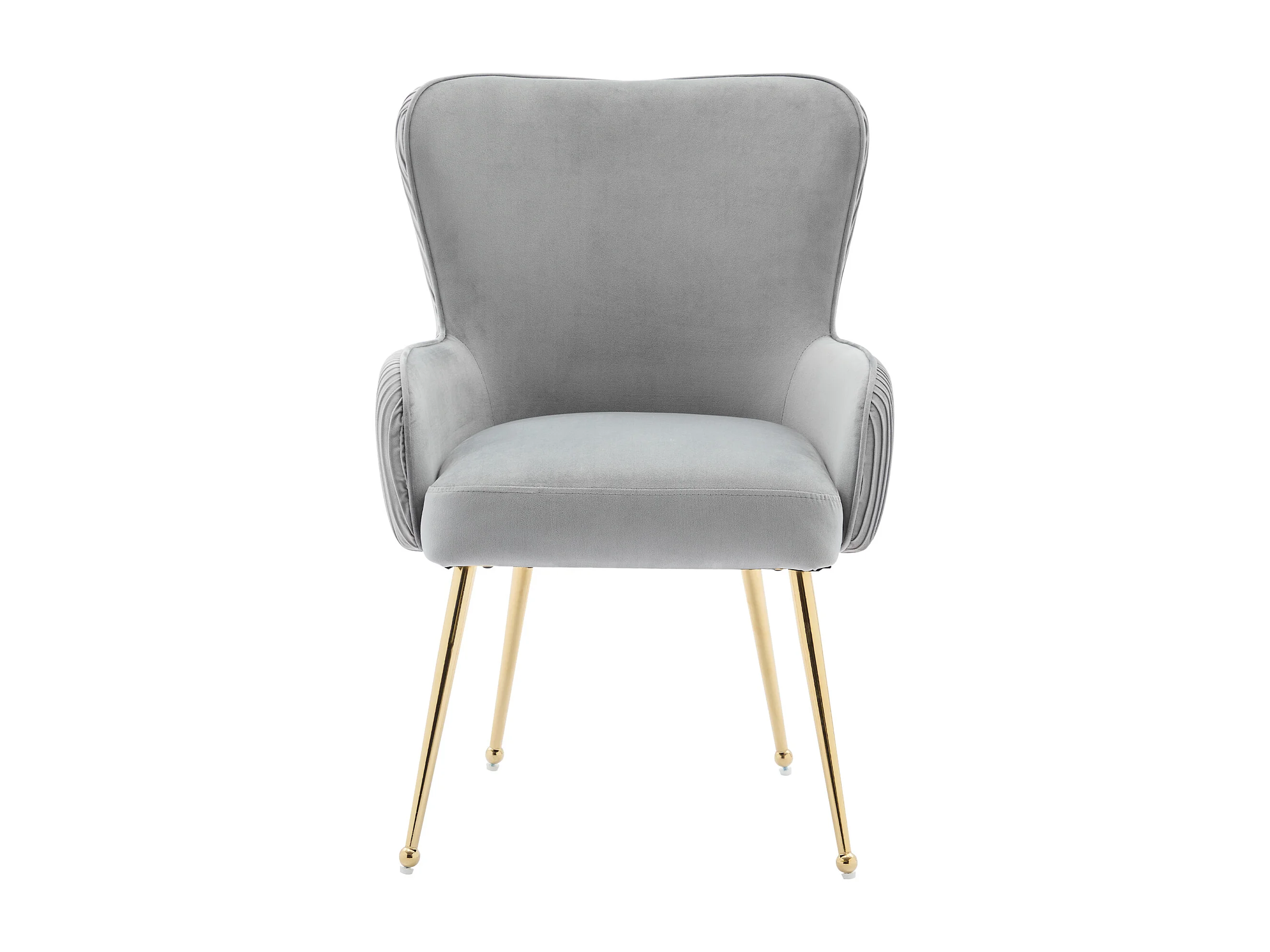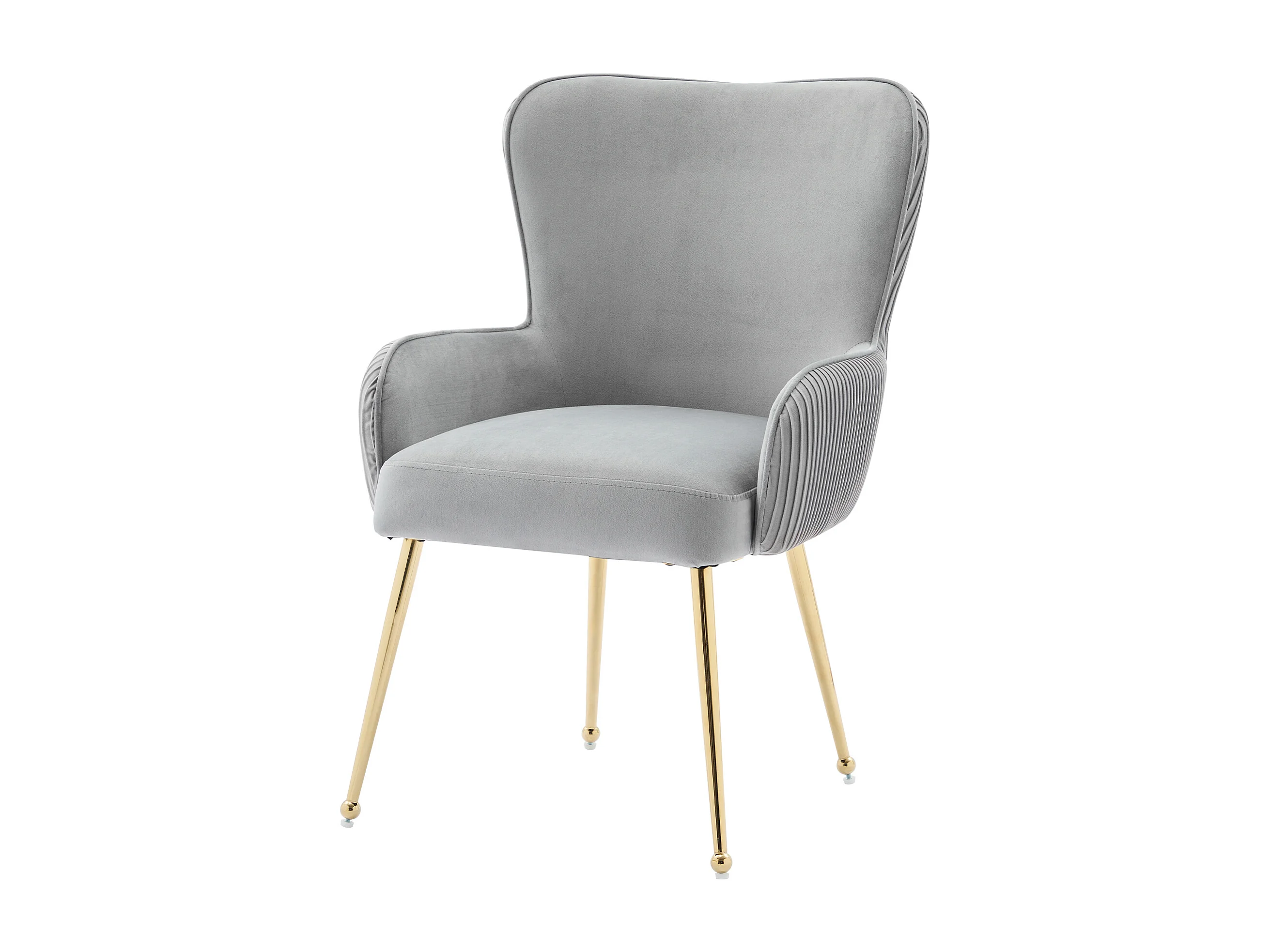 Chaise velours grise luxe avec accoudoirs pieds métal doré réglables salon chambre lounge lot de 2
