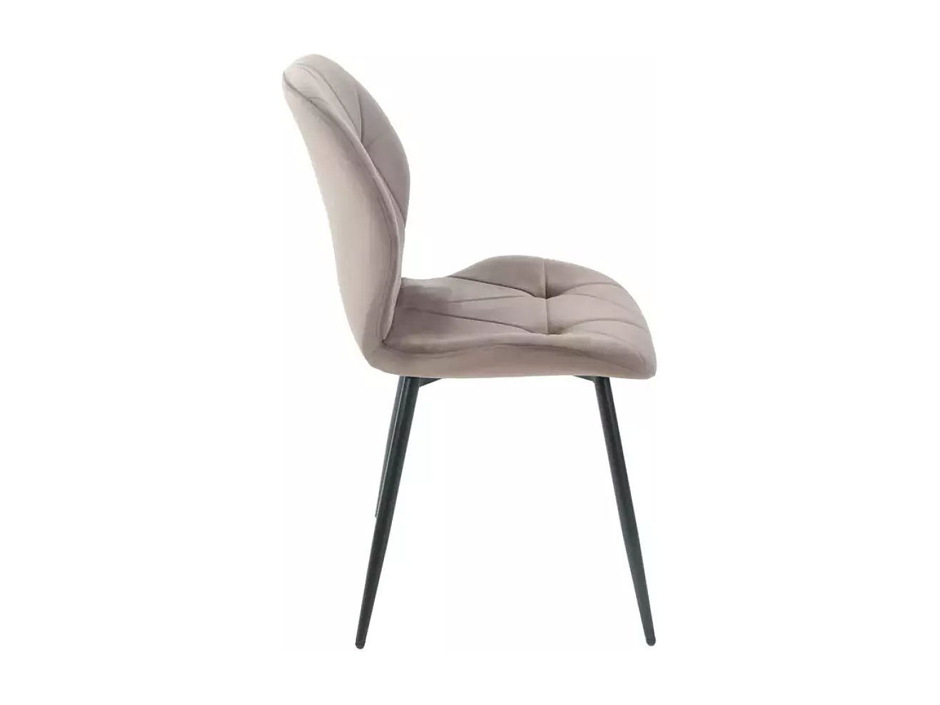 Chaise velours cappuccino avec piétement noir mat et design matelassé moderne LIRYCA