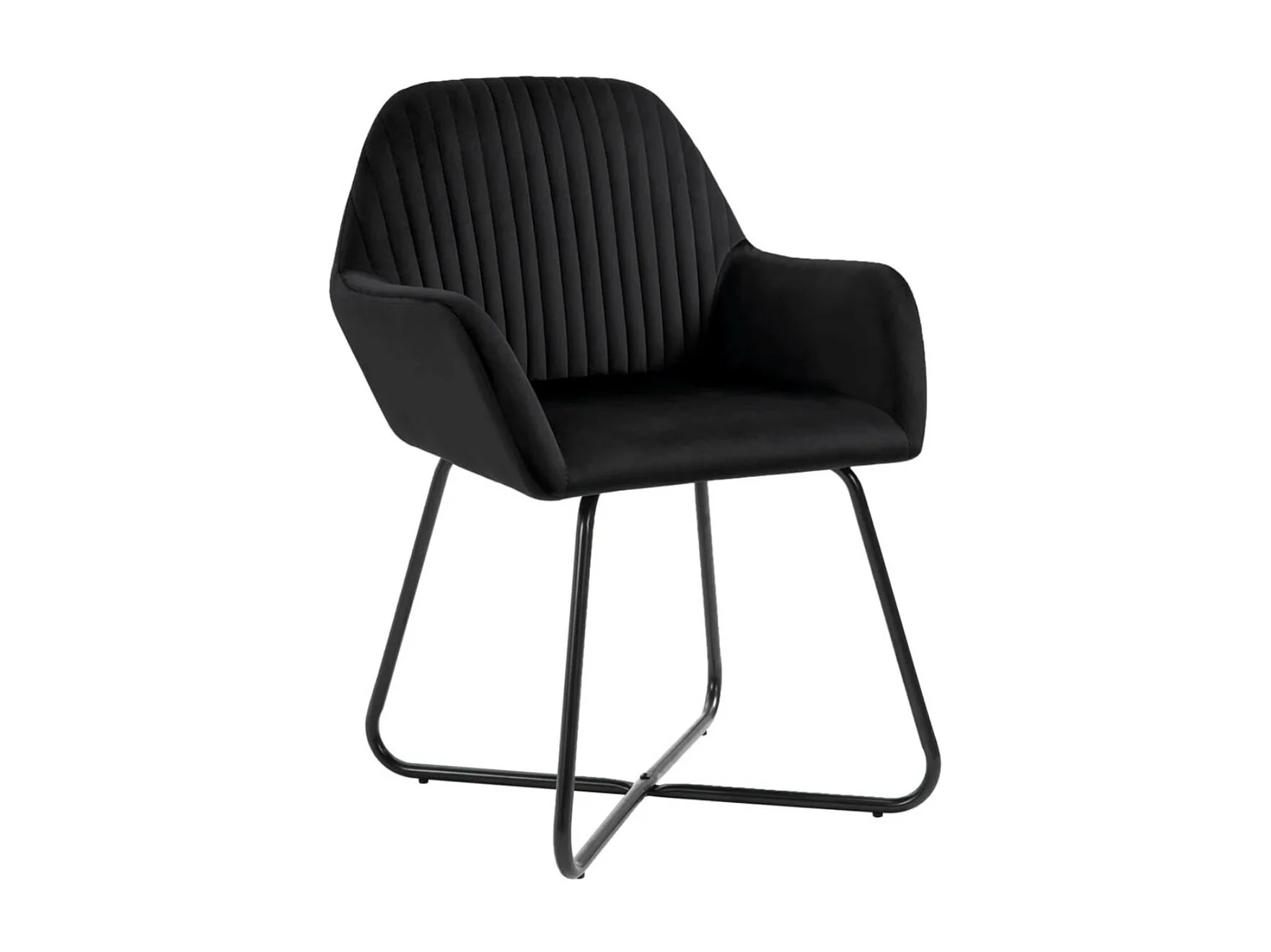 Lot de 2 chaises Mikee - Velours luxe avec pieds métal Noir-Couleur Noir