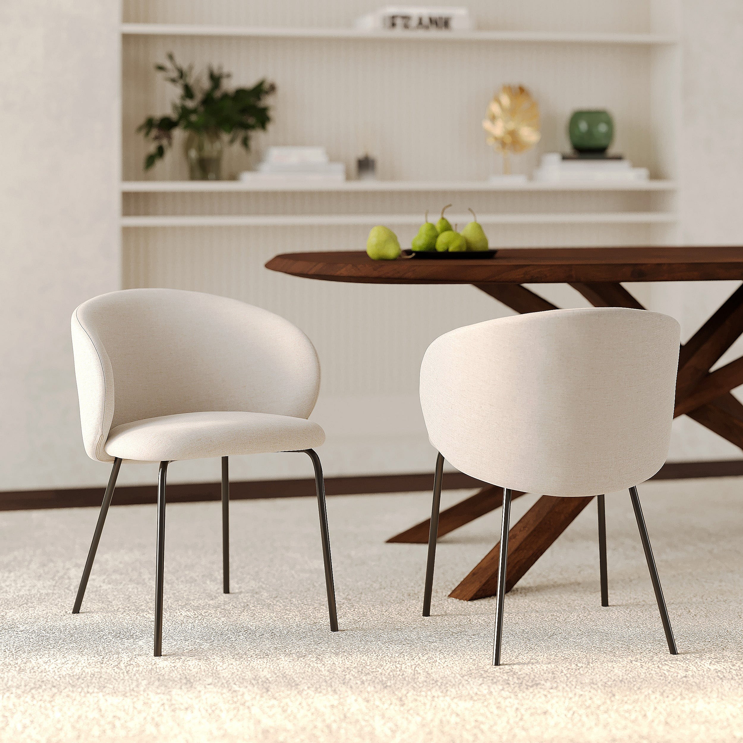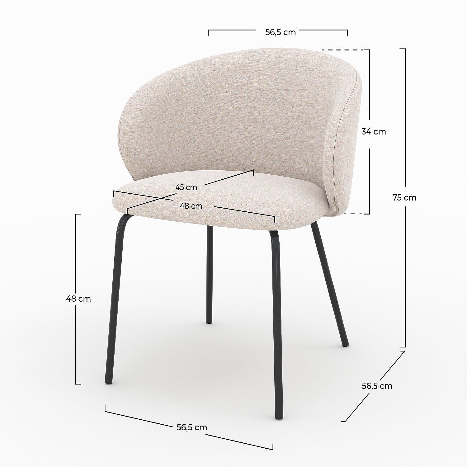 Lot de 2 chaises en tissu beige et pieds en métal noir - Victoria