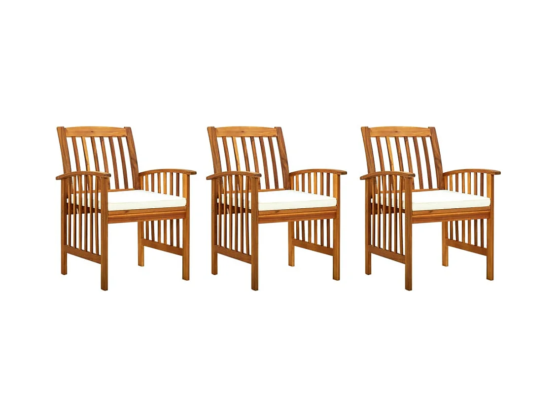 Chaises à dîner de jardin 3 pièces et coussins Bois d'acacia massif