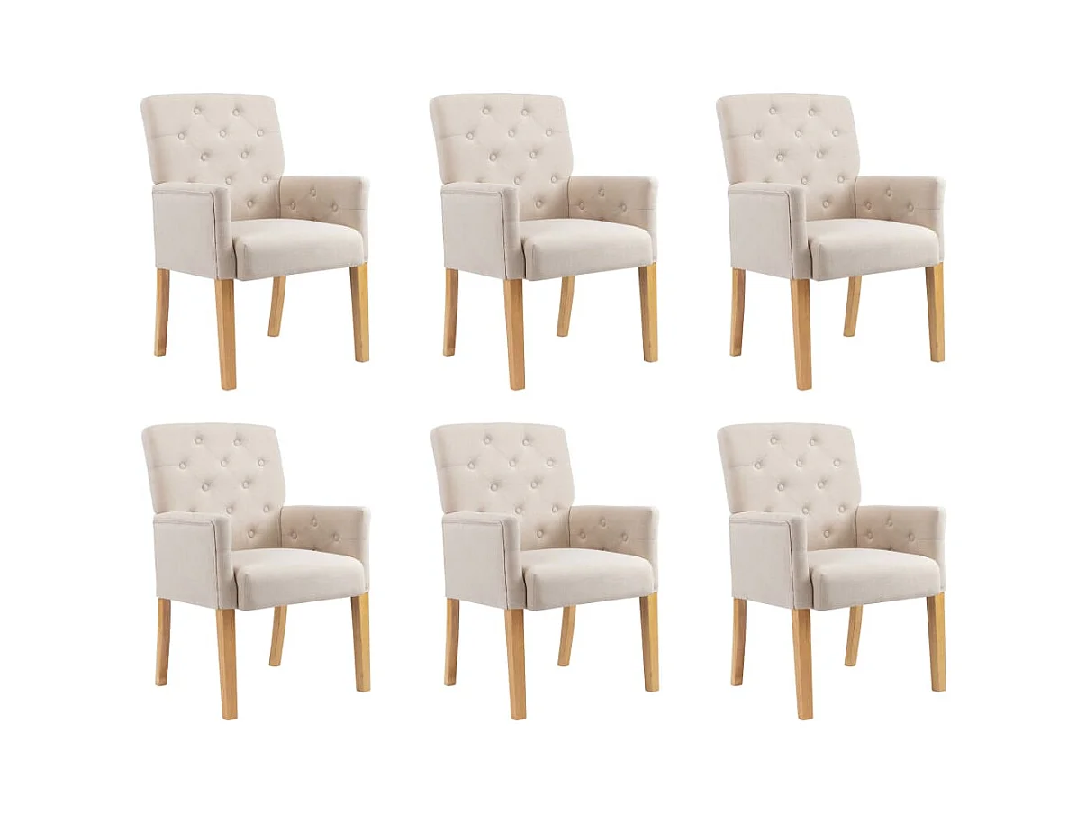 Chaises à manger avec accoudoirs lot de 6 beige tissu