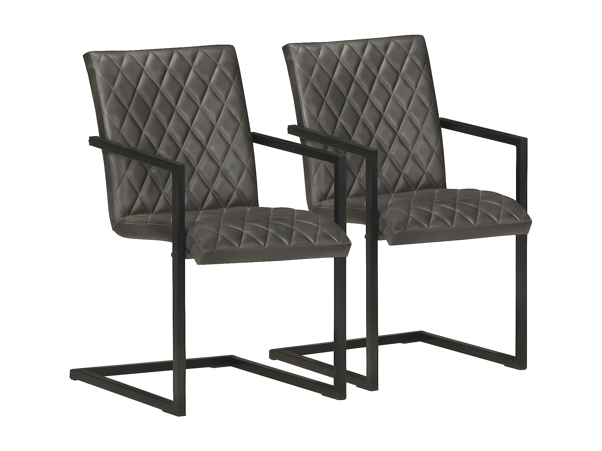 Chaises à manger cantilever lot de 2 gris cuir véritable