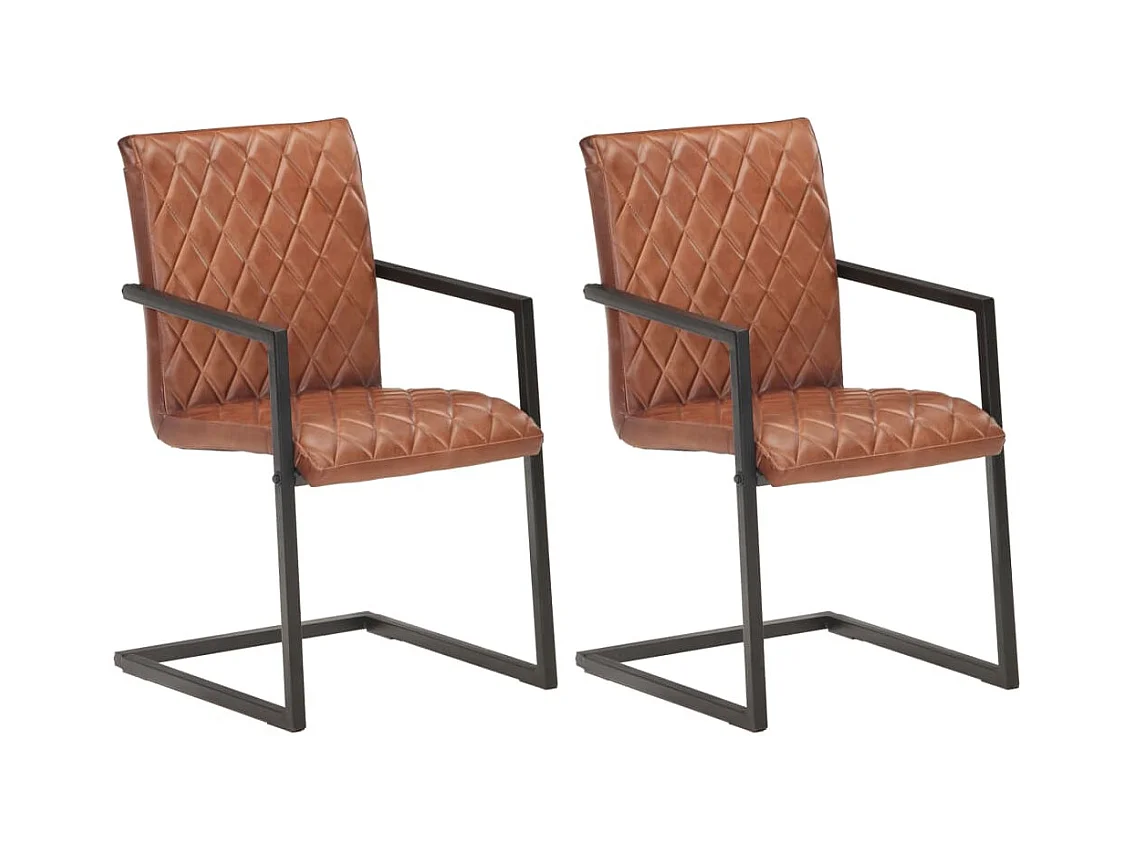 Chaises à manger cantilever lot de 2 marron cuir véritable REO53959