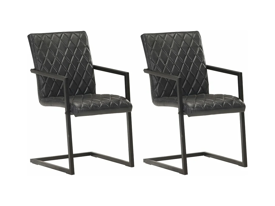 Chaises à manger cantilever lot de 2 noir cuir véritable REO78137