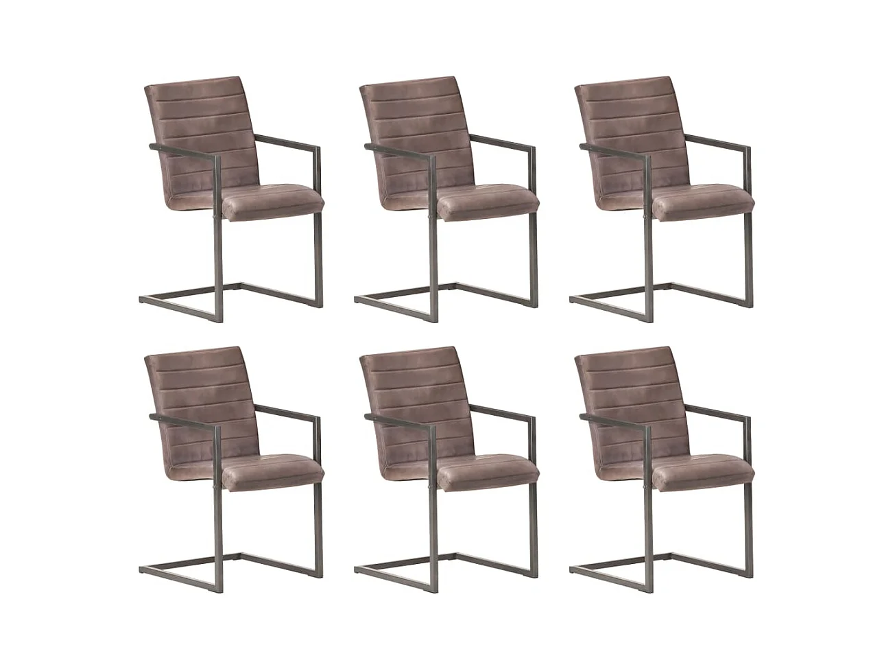 Chaises à manger cantilever lot de 6 marron cuir véritable