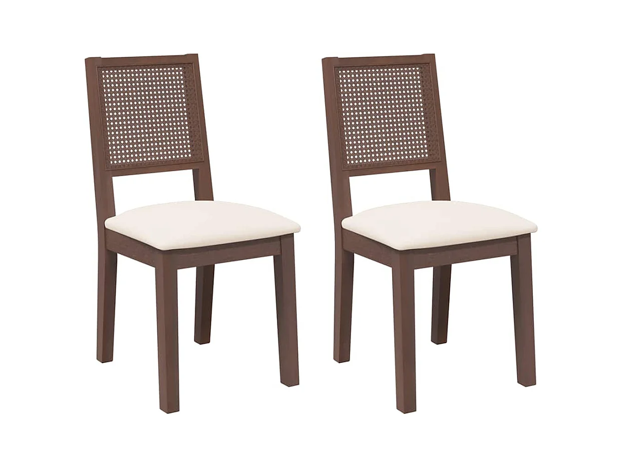 Chaises à manger coussins 2 pcs marron bois massif caoutchouc