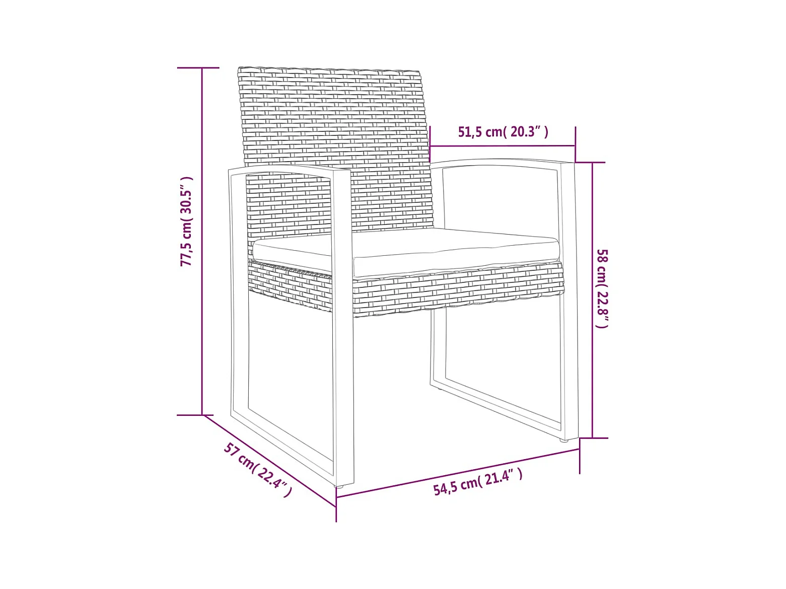 Chaises à manger de jardin lot de 2 noir rotin PP