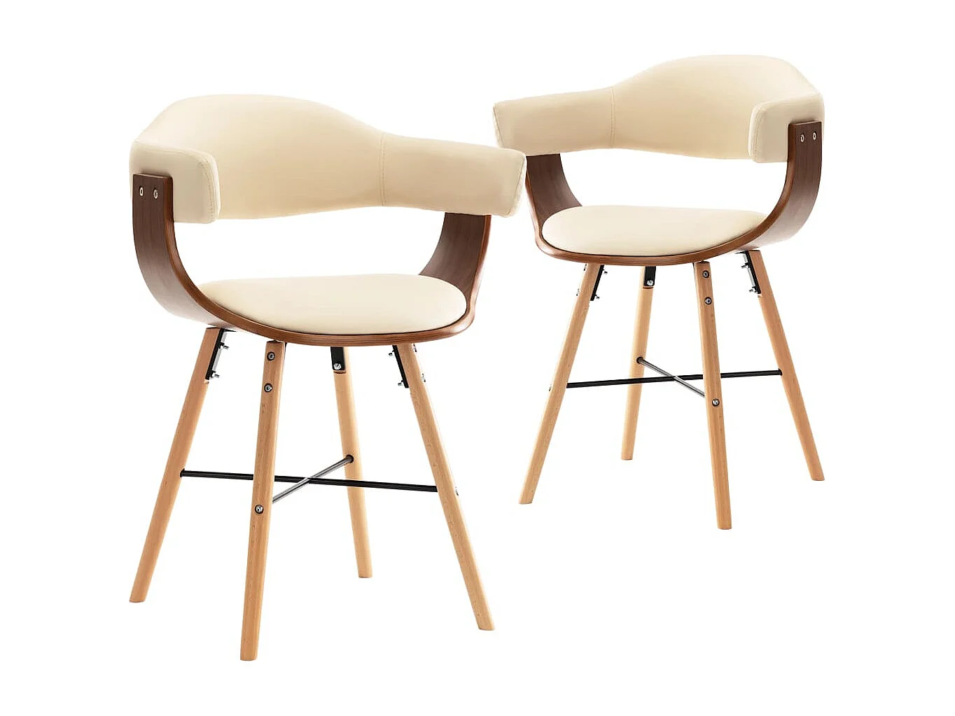 Chaises à manger lot de 2 crème similicuir et bois courbé