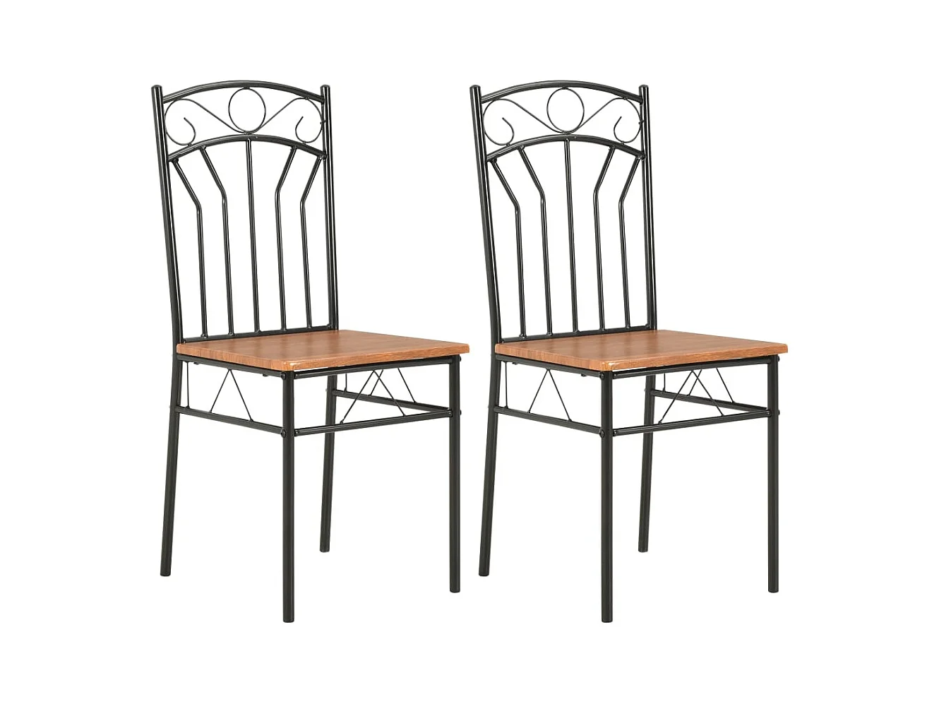 Lot de 2 chaises en orme naturel foncé et lattes d'acier noir - CROSS METAL