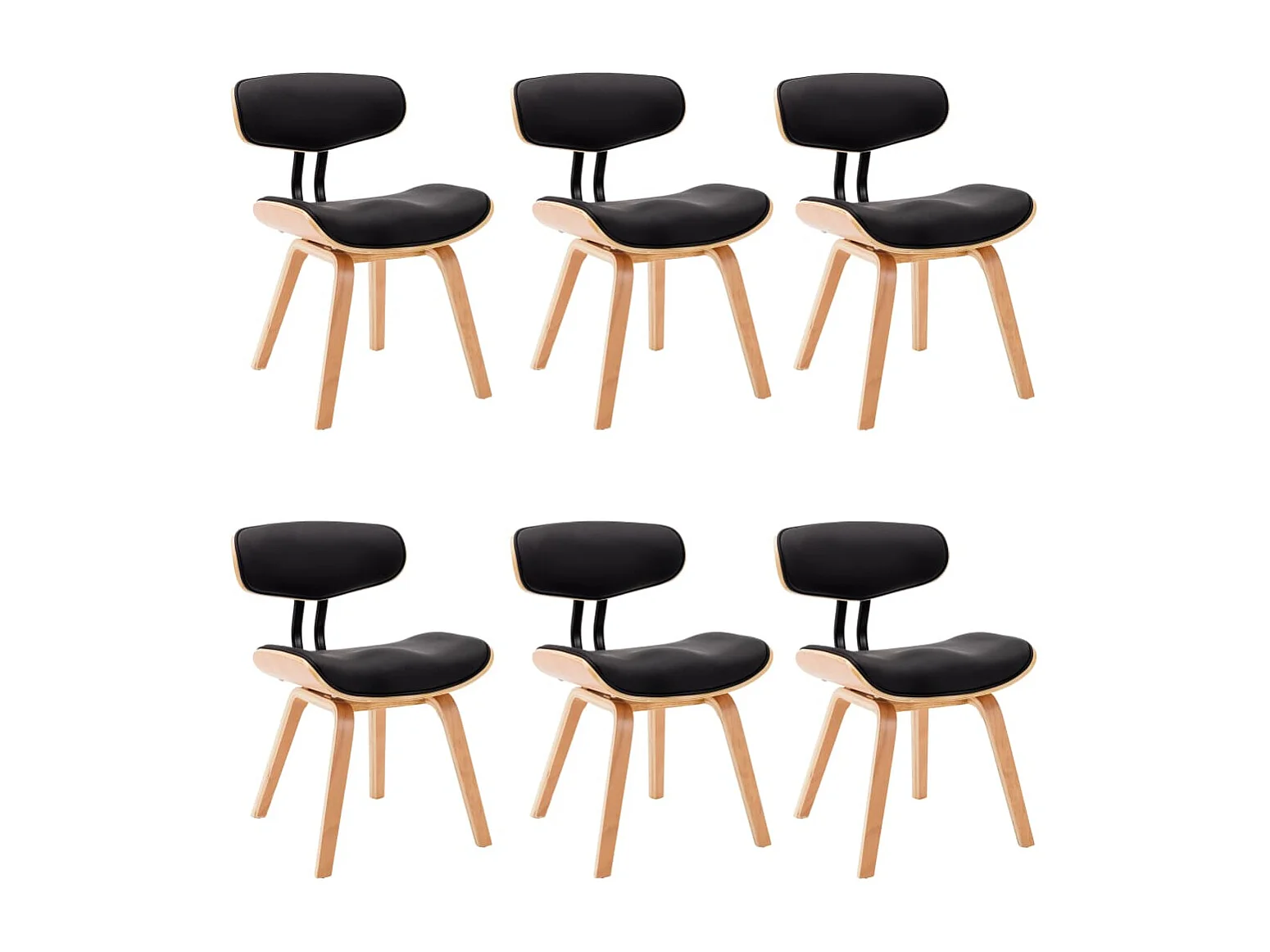 Chaises à manger lot de 6 noir bois courbé et similicuir