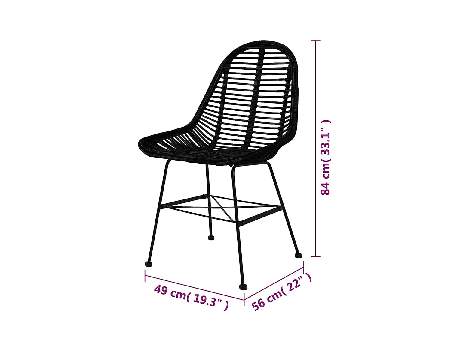 Chaises à manger lot de 6 noir rotin naturel