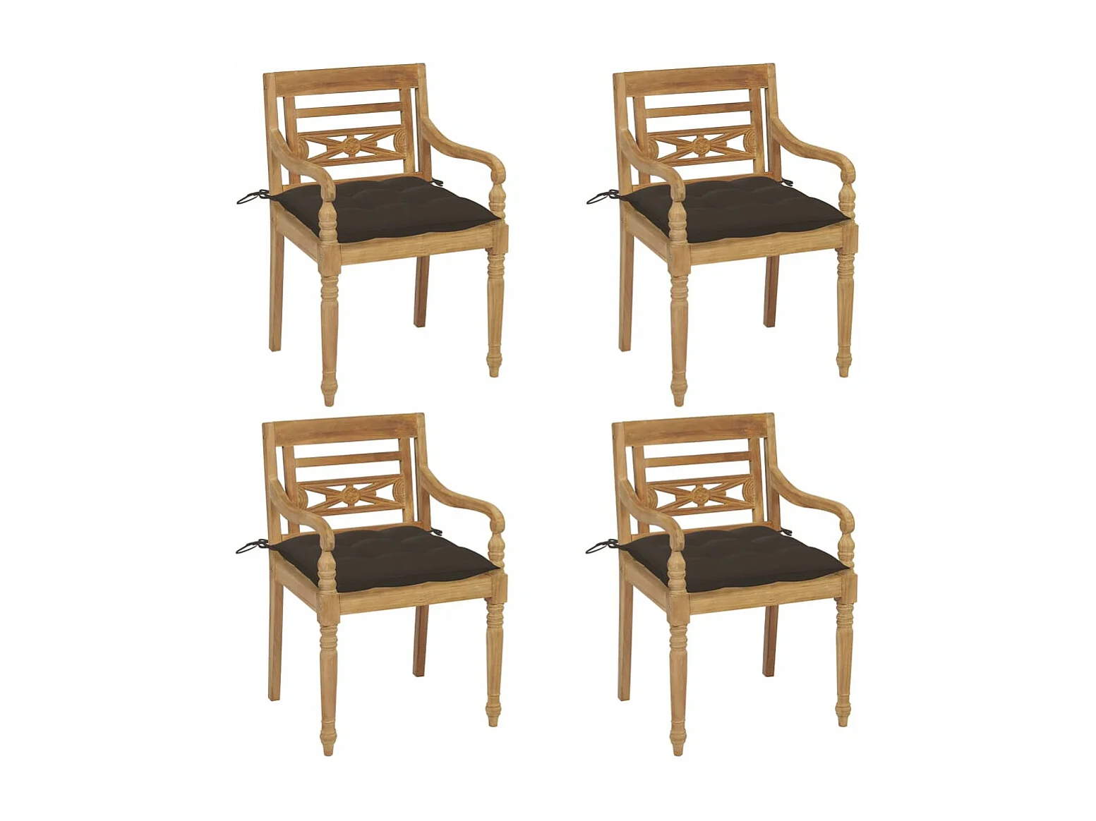 Chaises Batavia avec coussins lot de 4 Bois de teck solide