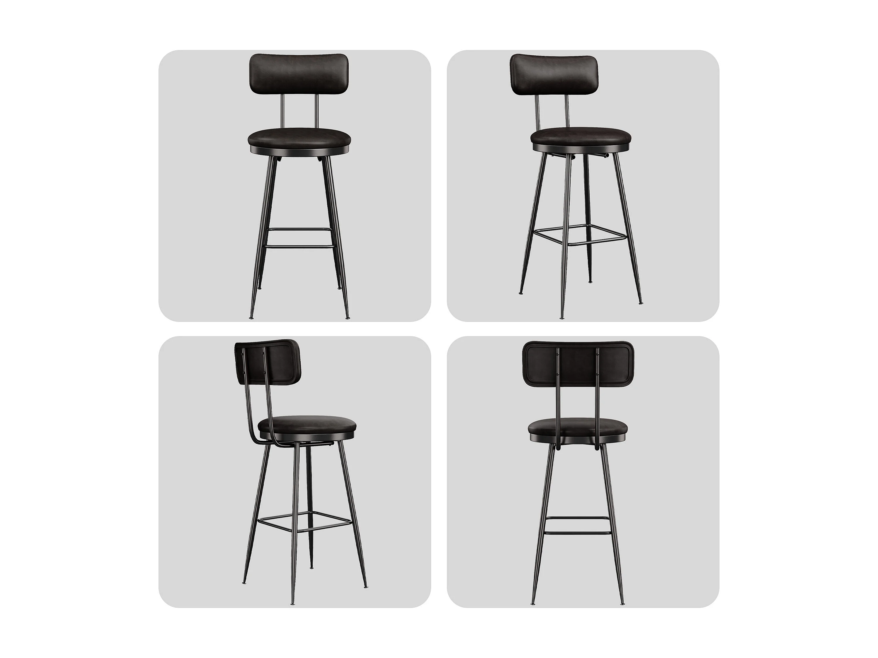 Lot de 4 Chaises de Bar – Grises, Style Industriel, Dossier, Hauteur 65 cm