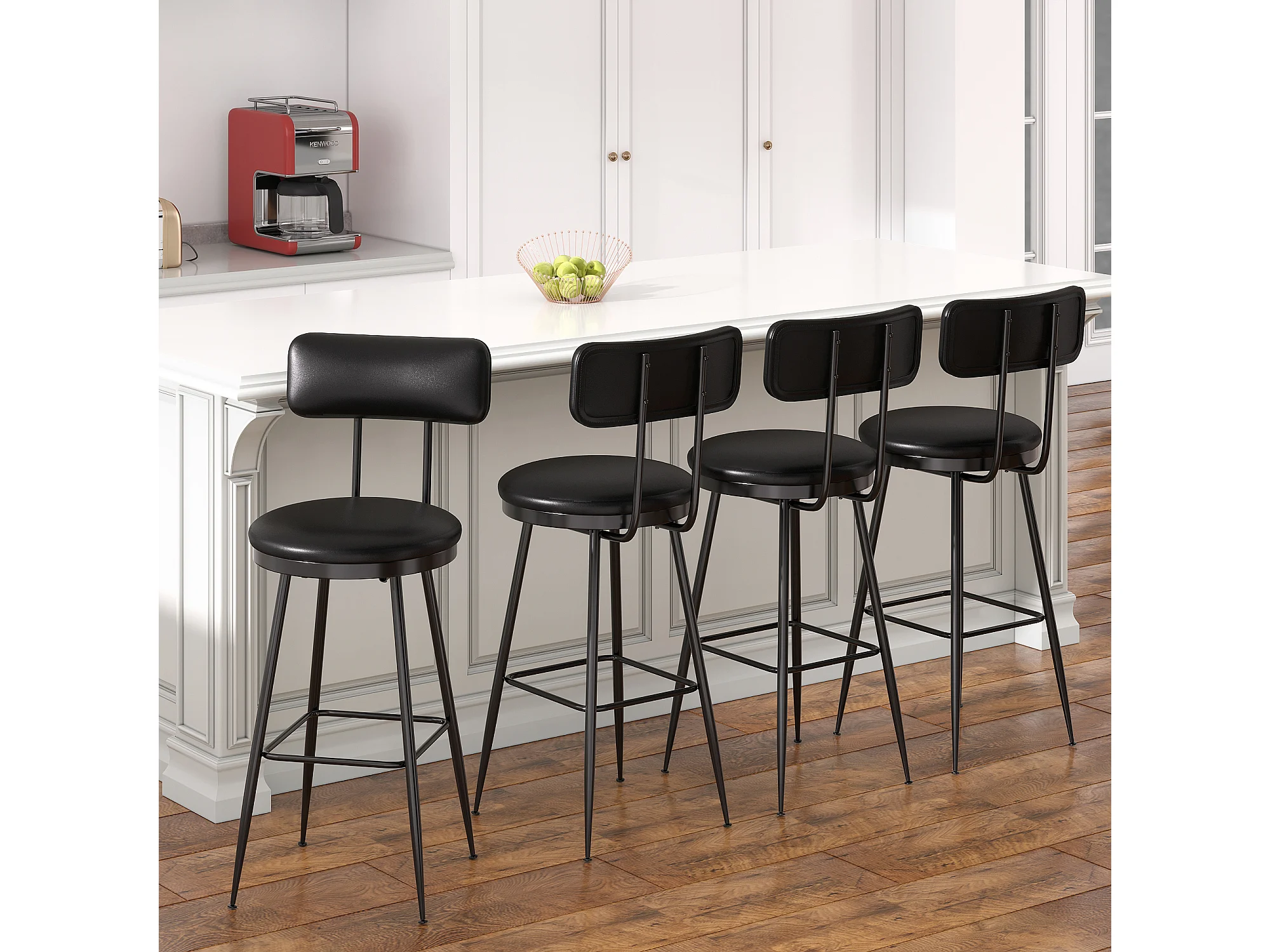 Lot de 4 Chaises de Comptoir – Noires, Simili Cuir, Dossier, Hauteur 65 cm