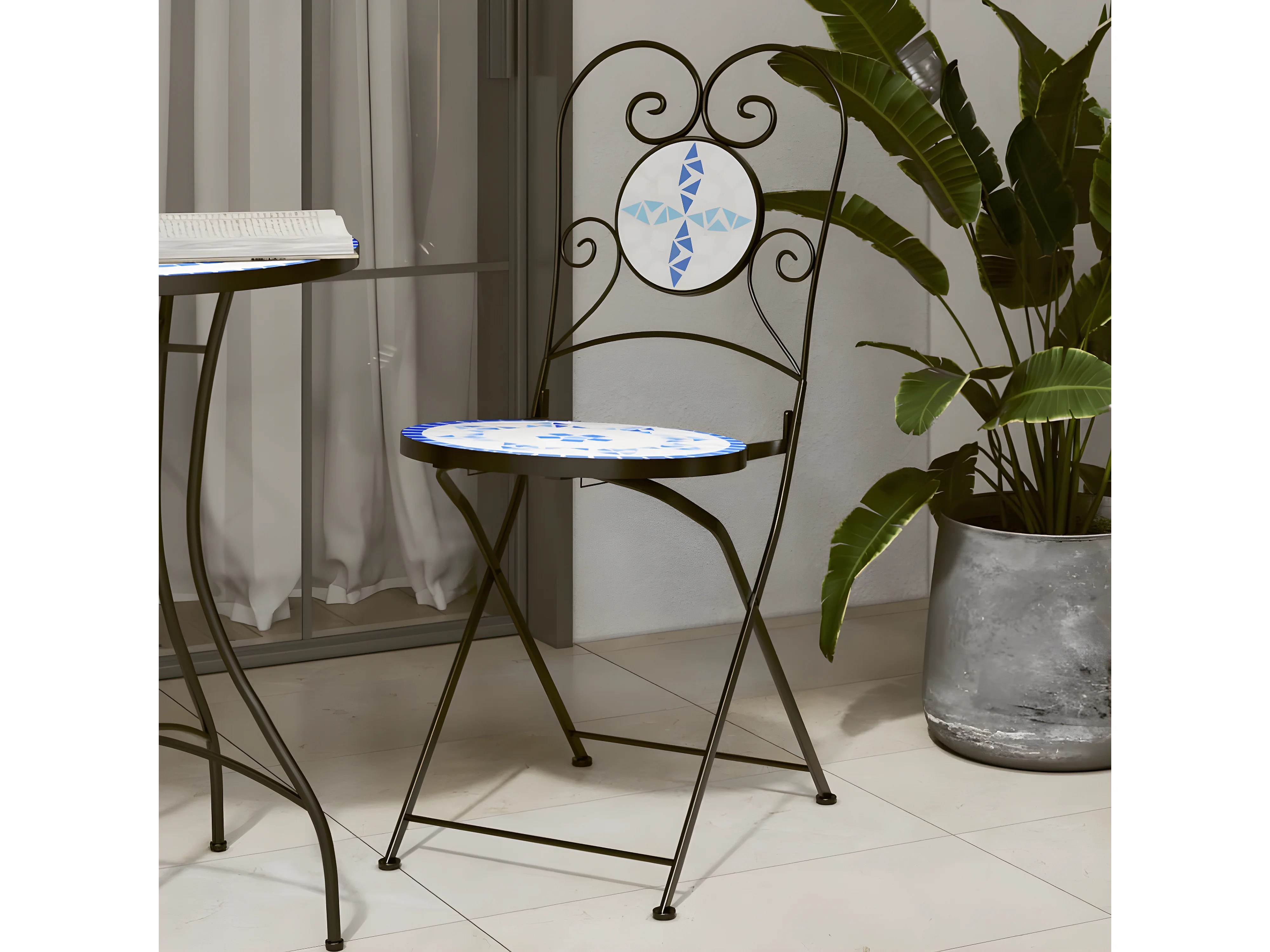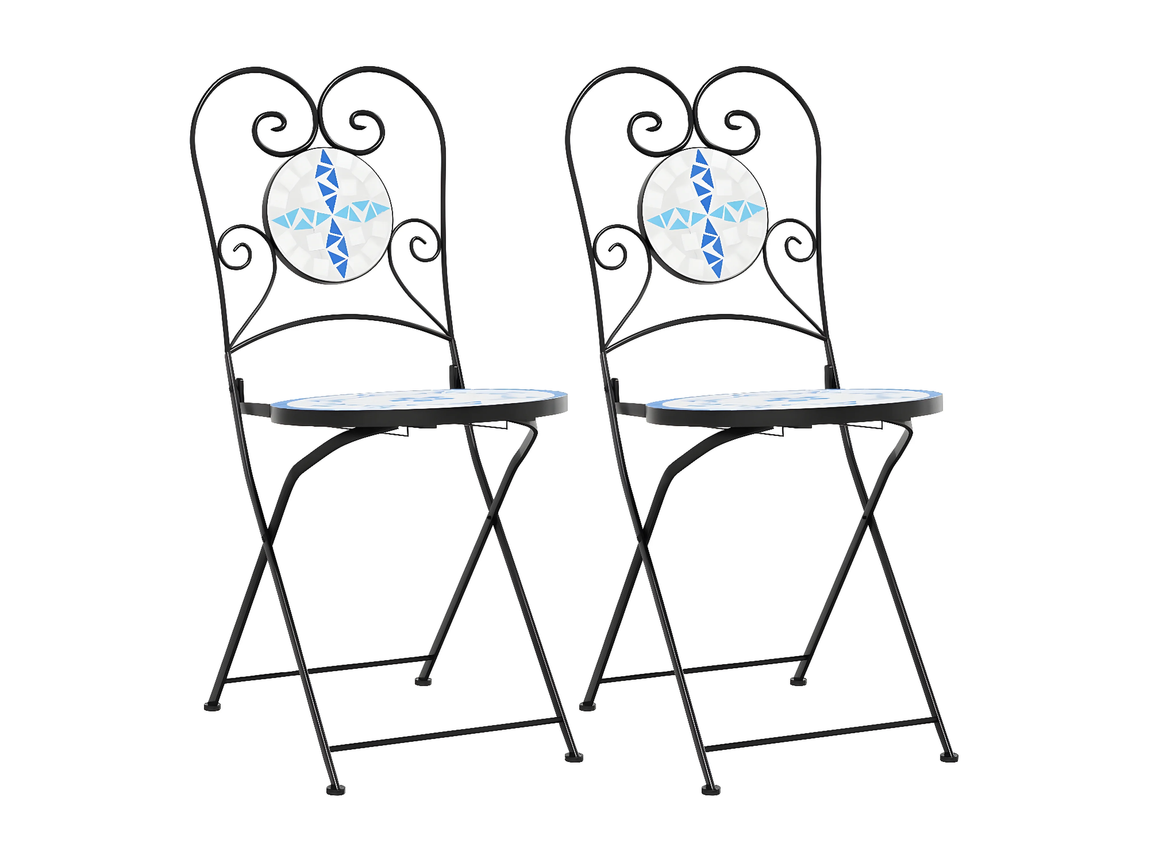 Chaises de bistro pliables lot de 2 bleu et blanc céramique