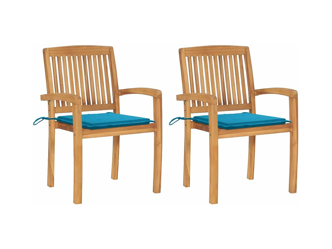 Chaises de jardin 2 pcs avec coussins bleu Bois de teck massif