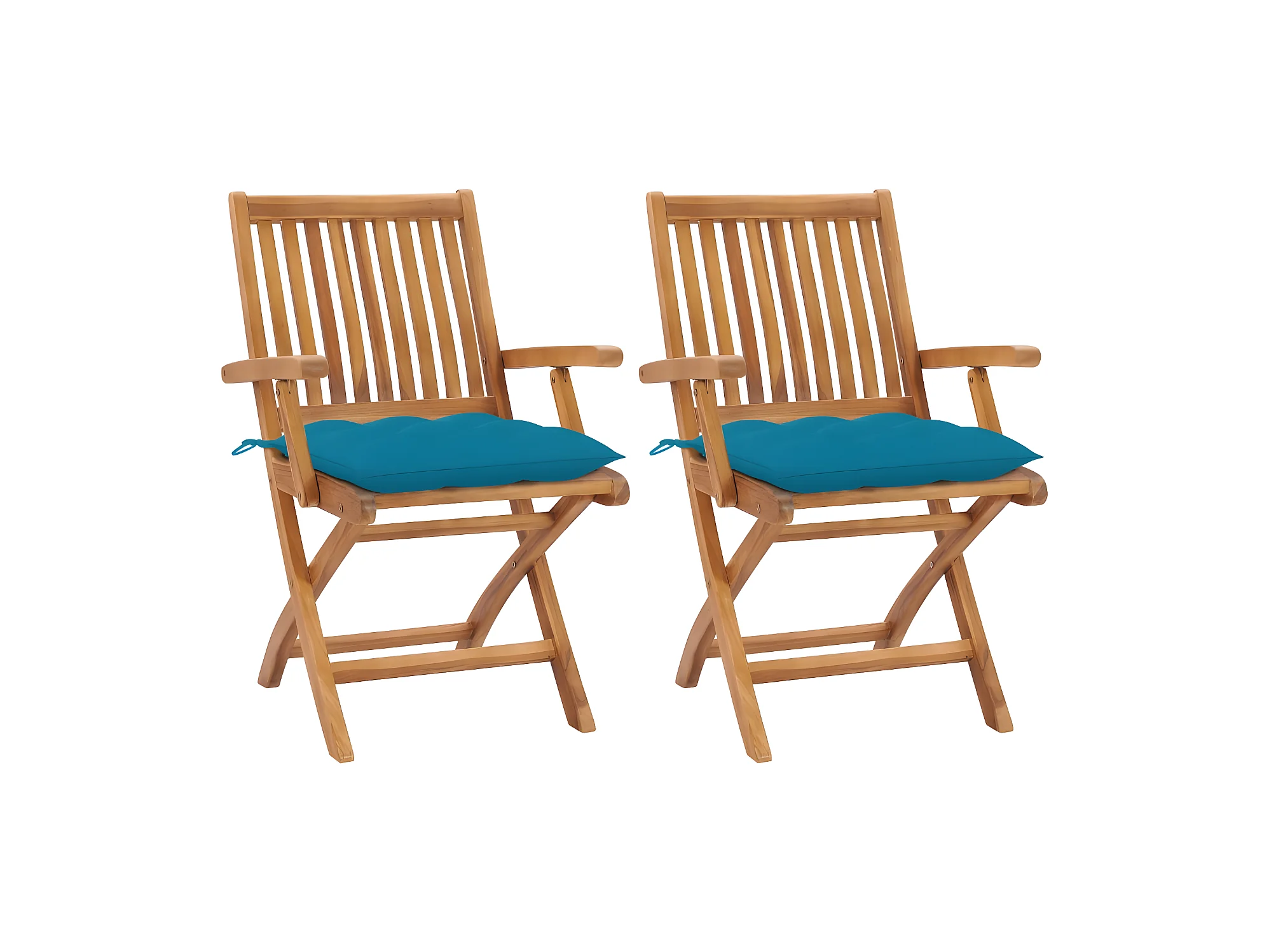 Chaises de jardin 2 pcs avec coussins bleu clair Teck massif SEF43268