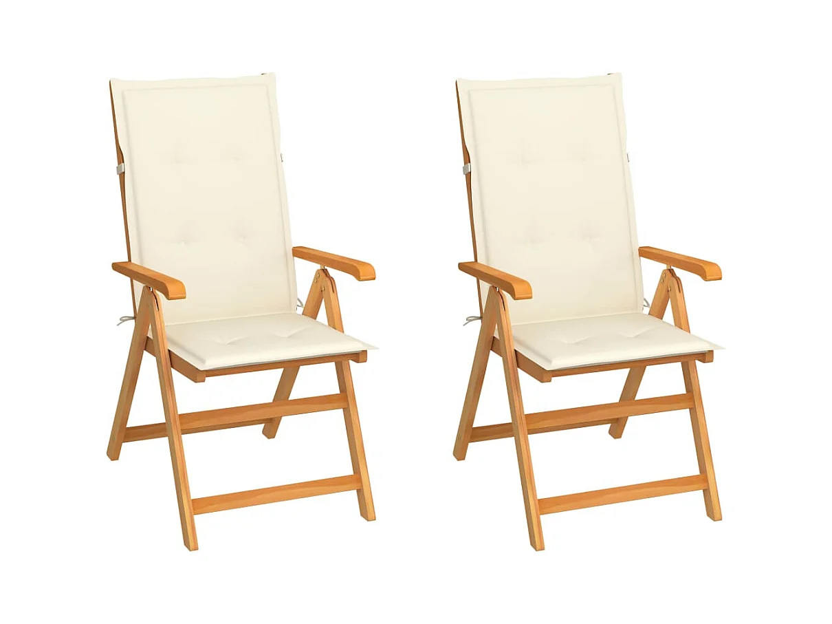 Chaises de jardin 2 pcs avec coussins crème Bois de teck massif 5