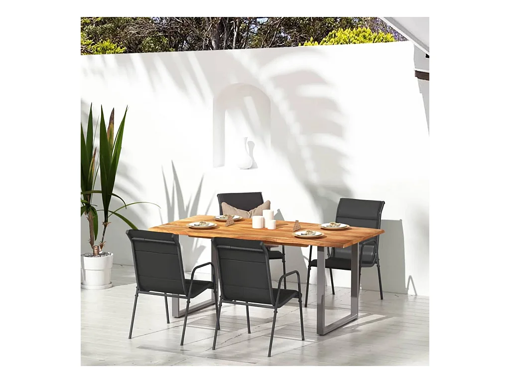 Chaises empilables de jardin 2 pcs Acier et textilène Noir