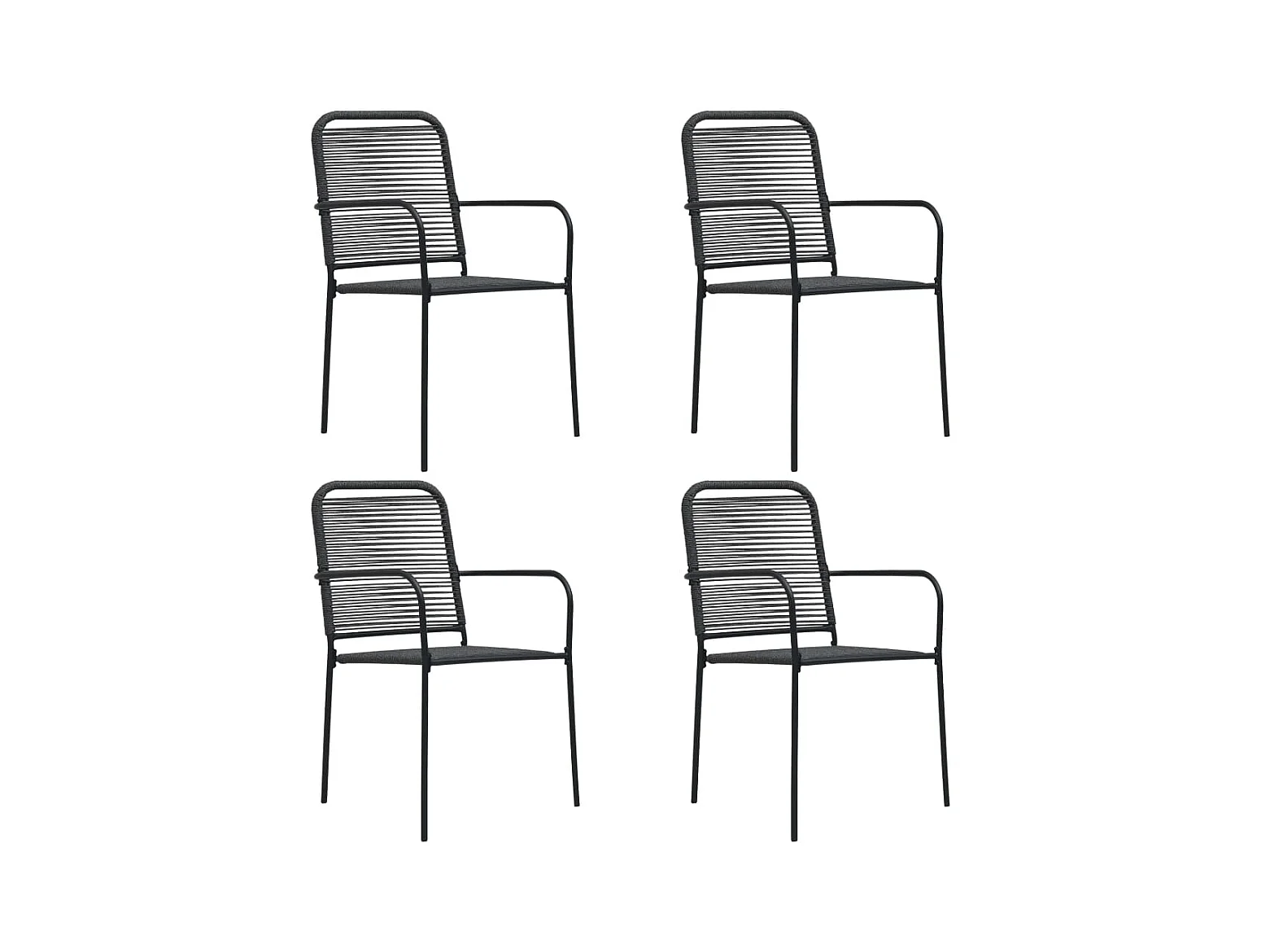 Chaises de jardin 4 pcs Corde en coton et acier Noir SEF65898