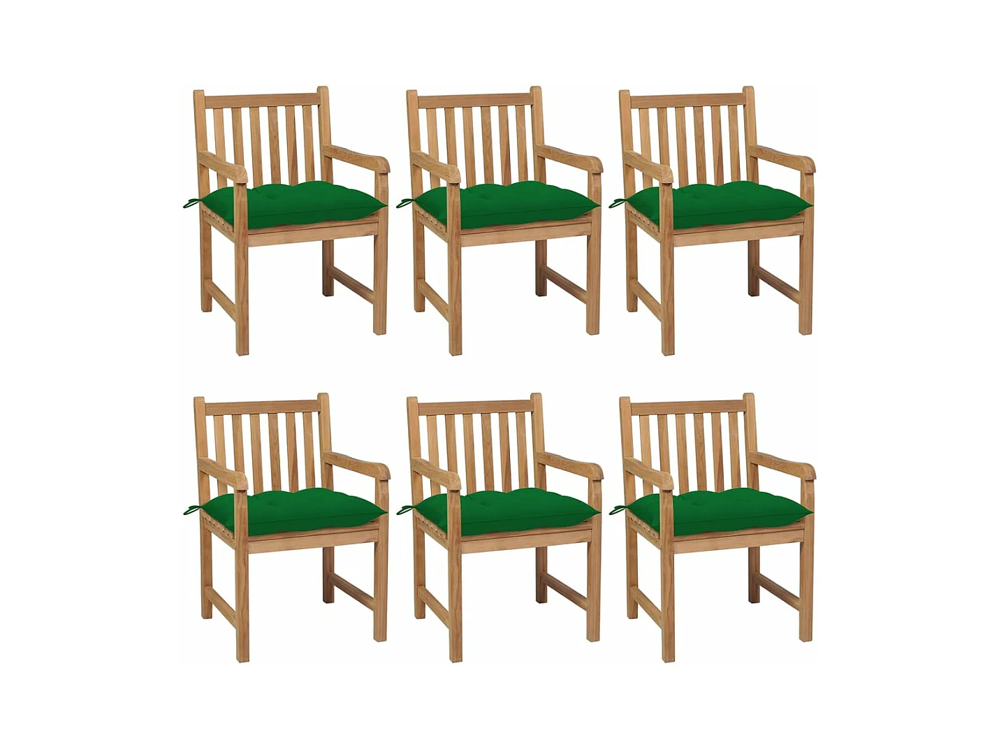 Chaises de jardin 6 pièces avec coussins vert Bois de teck solide