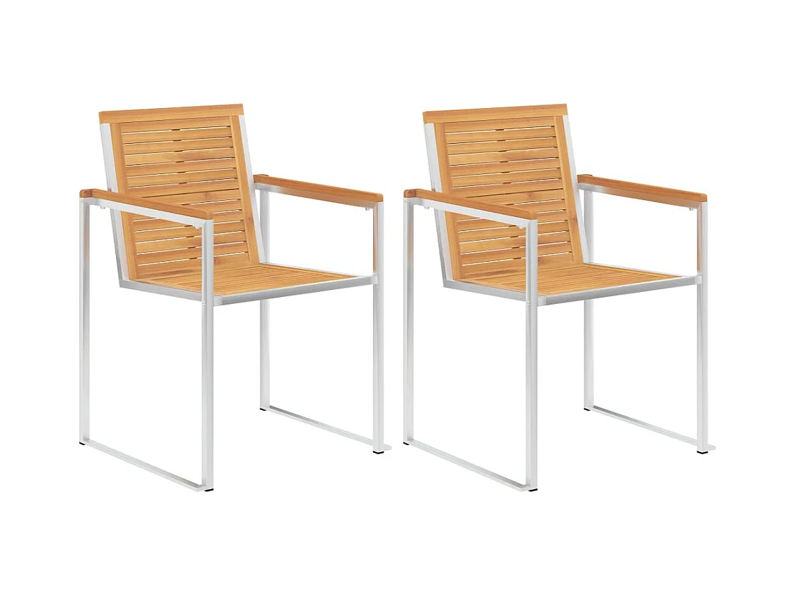 Chaises de jardin avec coussins 2 pcs Teck solide et acier 15