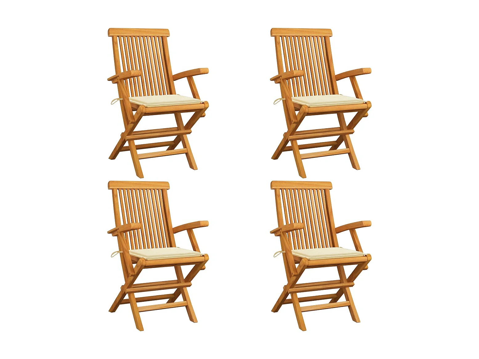 Chaises de jardin avec coussins crème 4 pcs Bois de teck massif 2