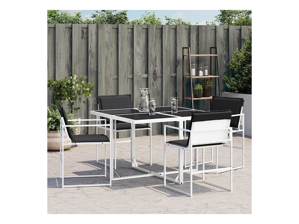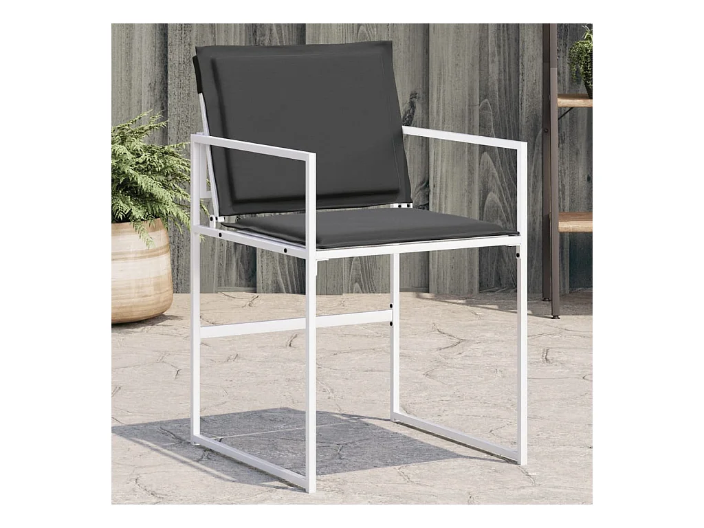 Chaises de jardin avec coussins lot de 4 blanc acier/textilène