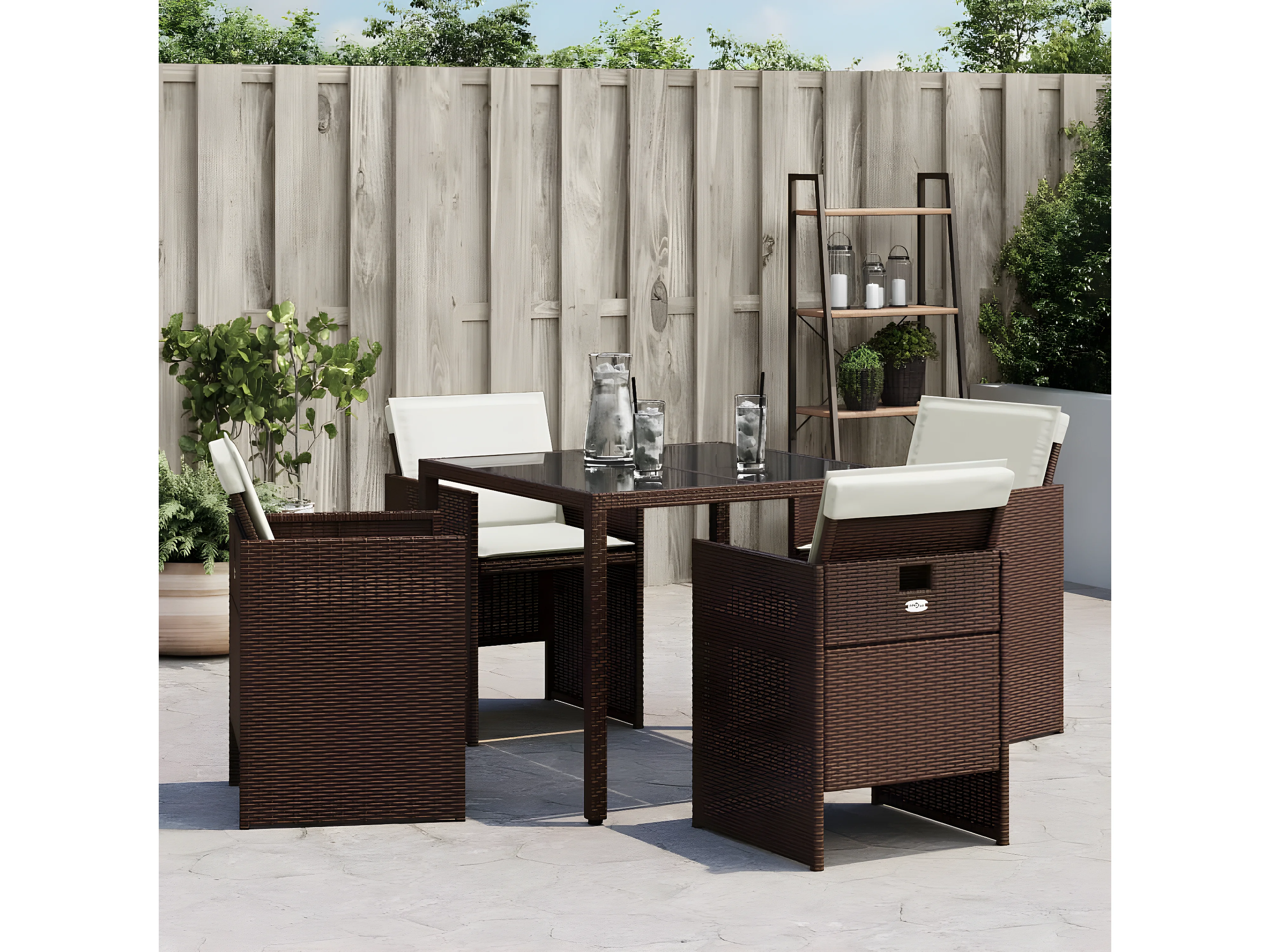 Chaises de jardin avec coussins lot de 4 marron résine tressée