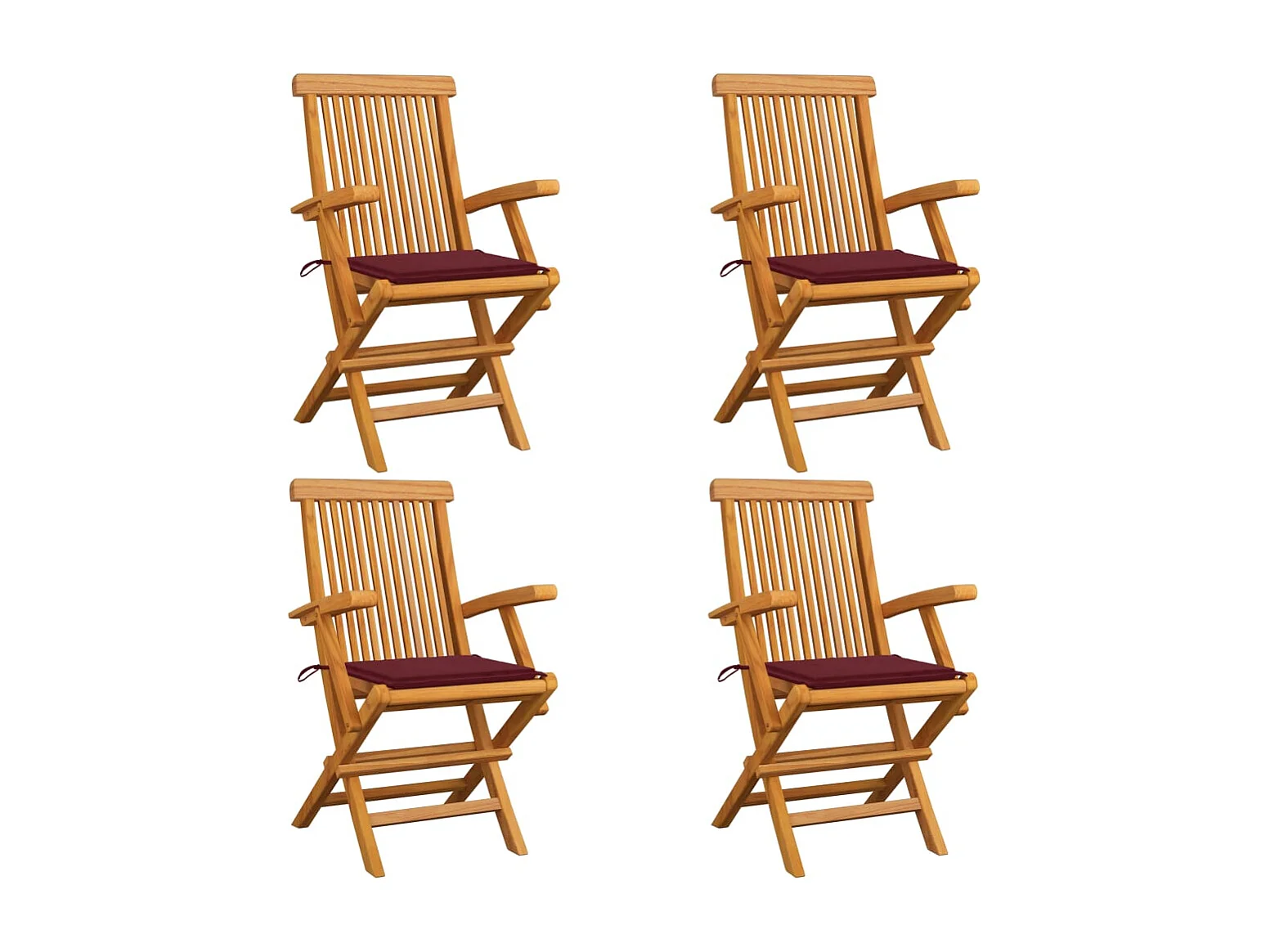 Chaises de jardin avec coussins rouge bordeaux 4pcs Teck massif 3