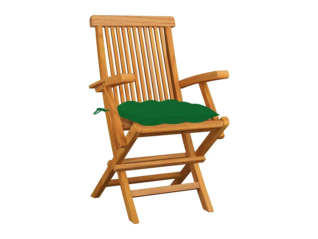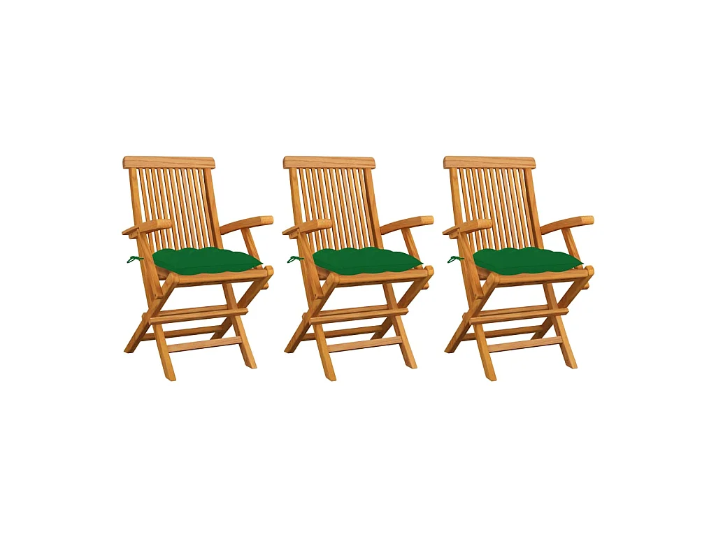 Chaises de jardin avec coussins vert 3 pcs Bois de teck massif
