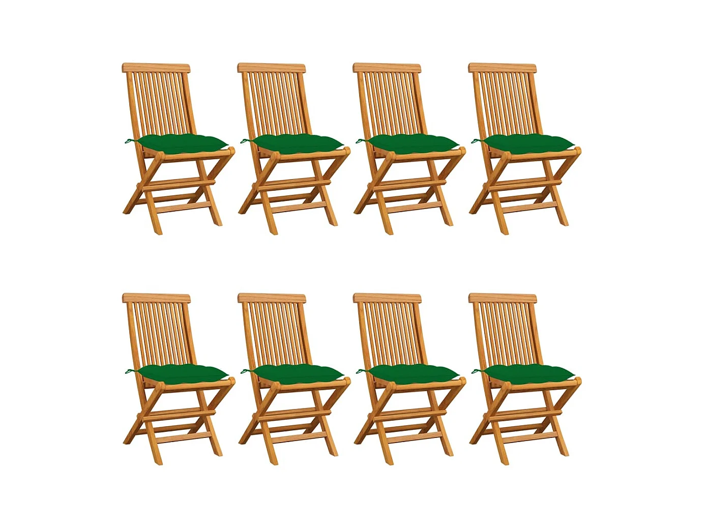 Chaises de jardin et coussins vert lot de 8 Bois de teck massif