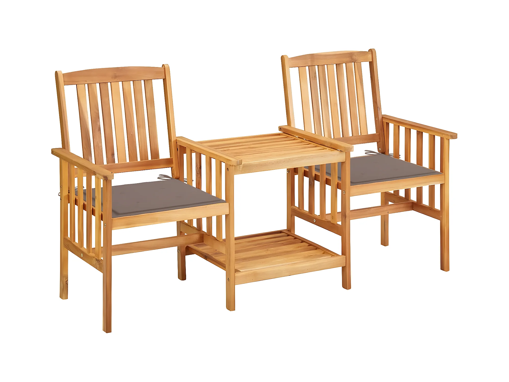 Chaises de jardin avec table à thé et coussins Acacia solide 17