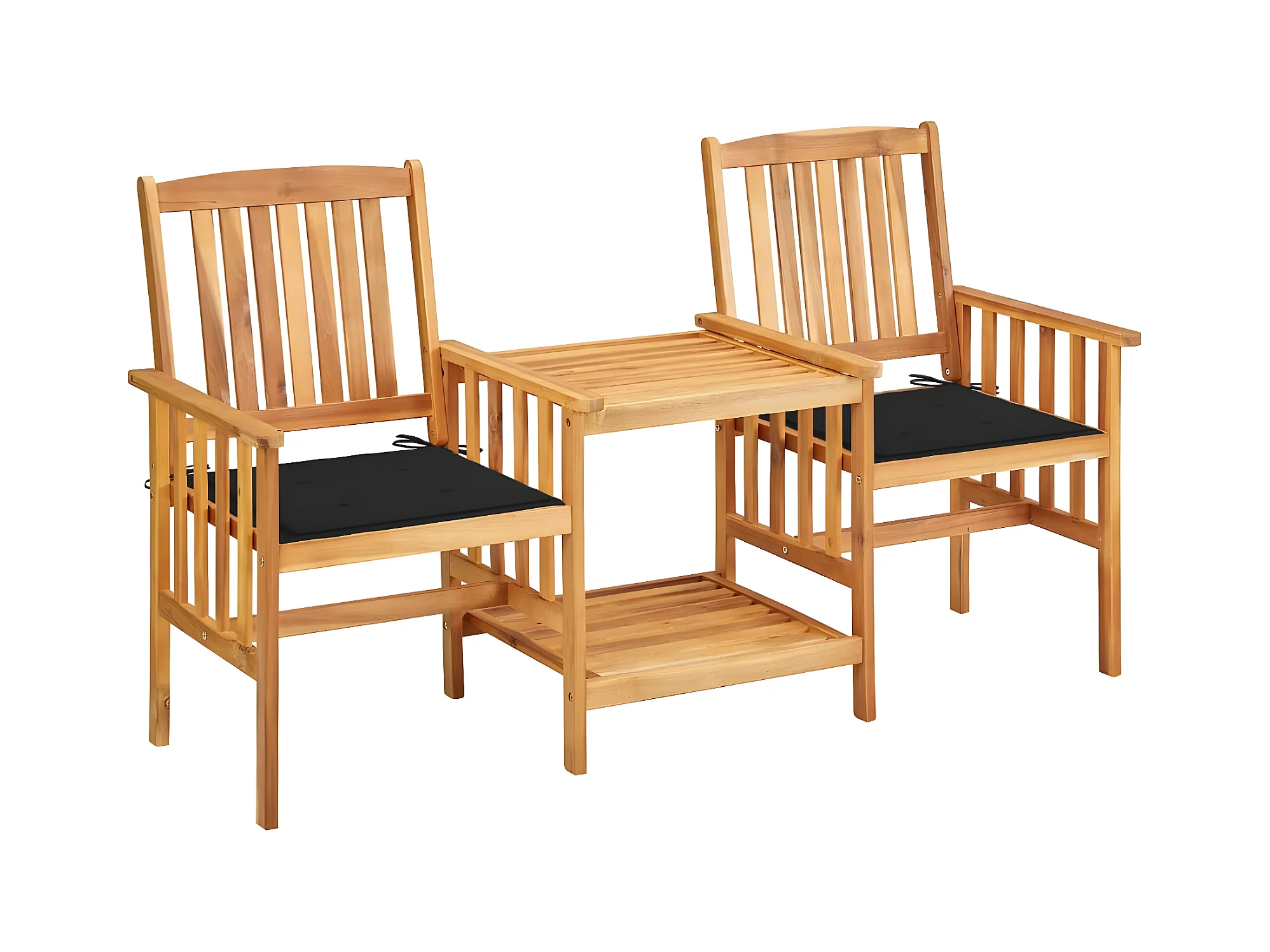 Chaises de jardin avec table à thé et coussins Acacia solide 5