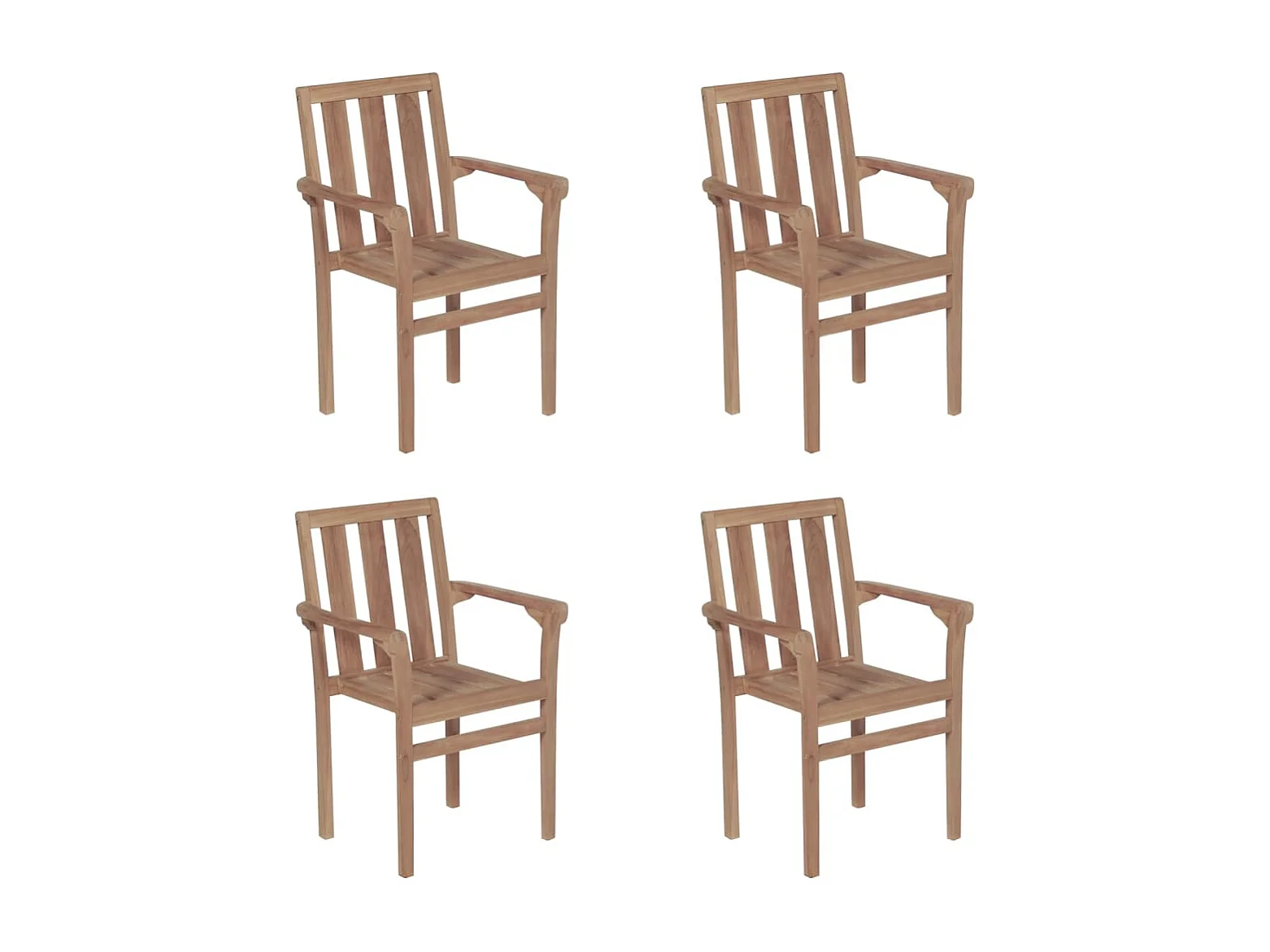 Chaises de jardin empilables avec coussins 4 pièces Teck solide