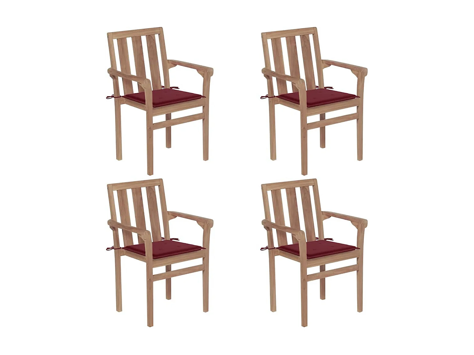 Chaises de jardin empilables avec coussins lot de 4 Teck solide