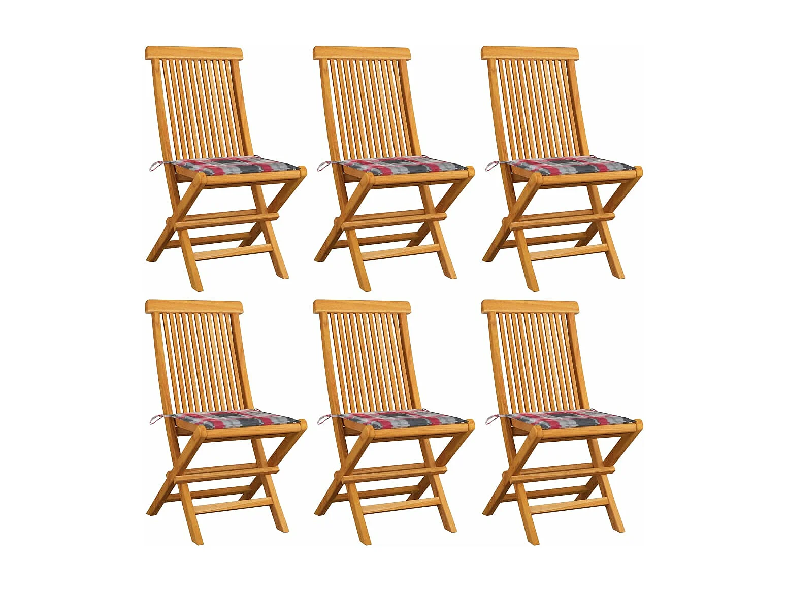 Chaises de jardin et coussins à carreaux rouge 6pcs Teck massif 2
