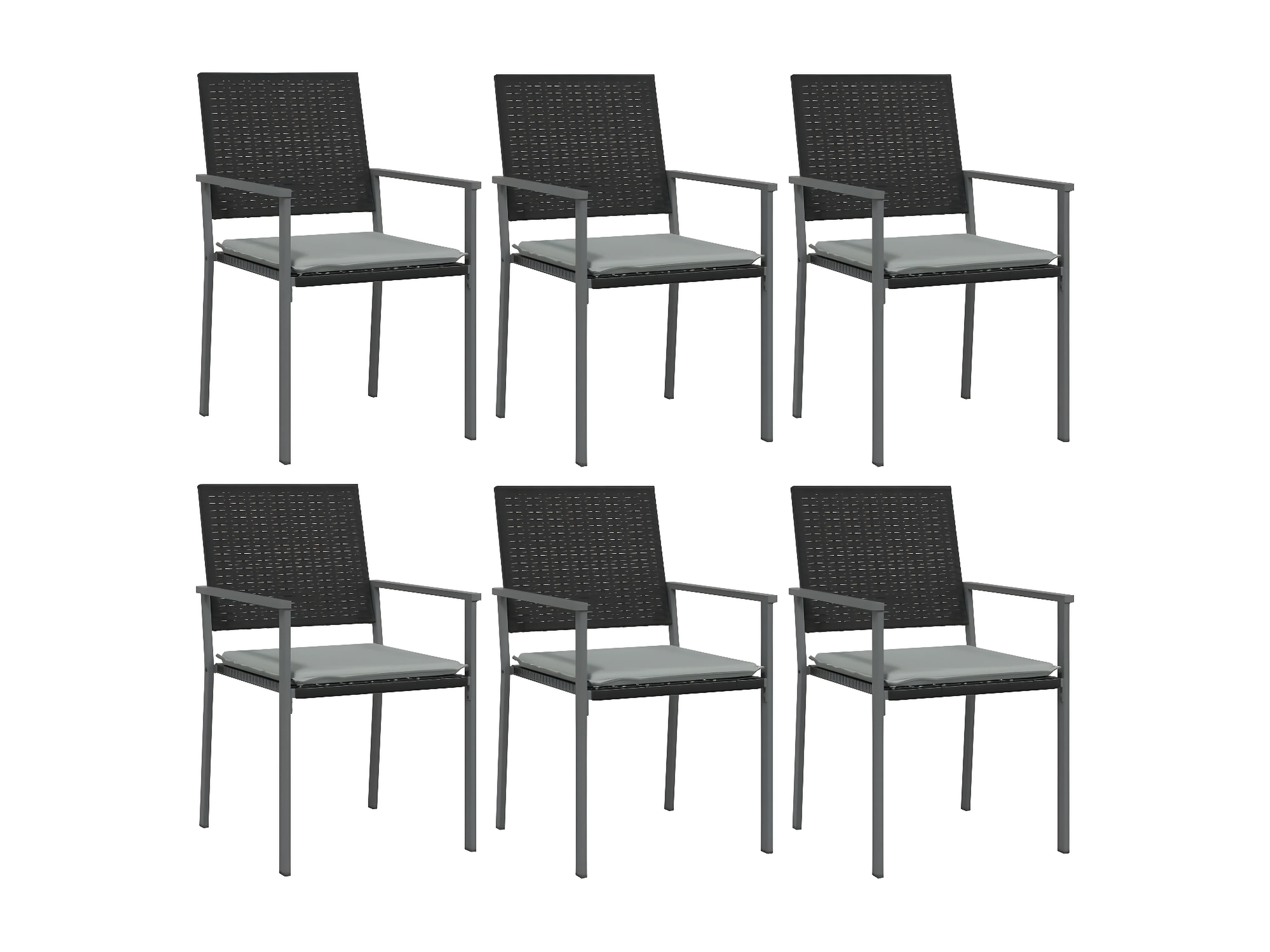 Chaises de jardin et coussins lot de 6 noir 54x62,5x89 rotin