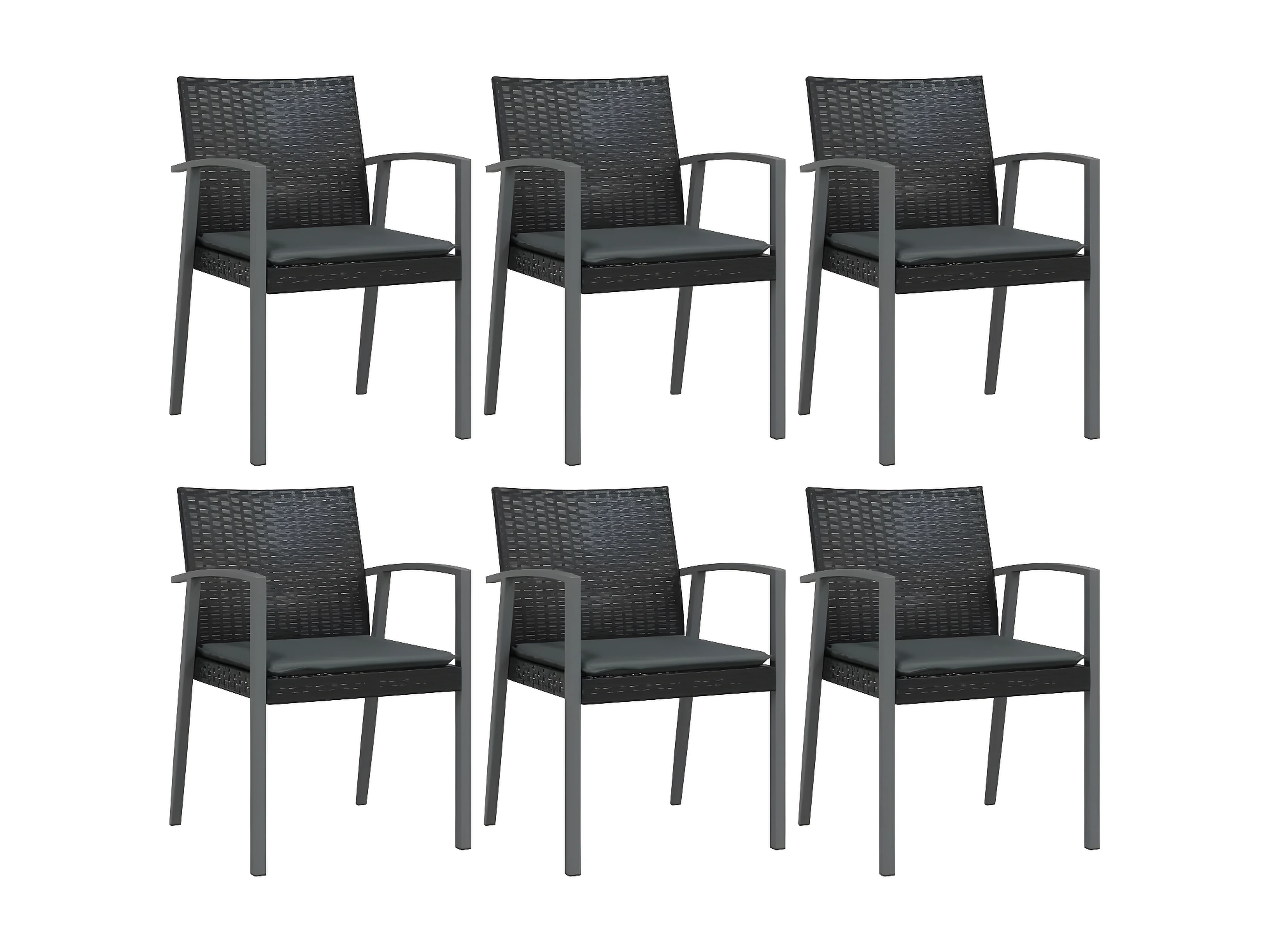 Chaises de jardin et coussins lot de 6 noir 56,5x57x83 rotin