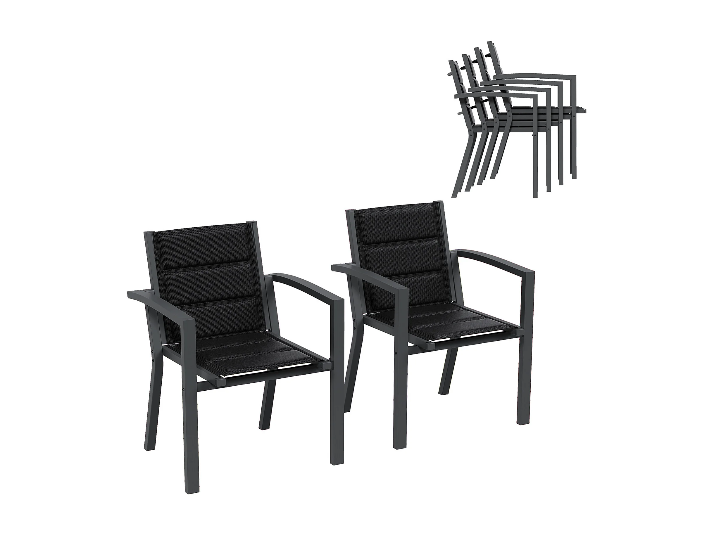 Chaises de Jardin - Lot de 2 Empilables en Aluminium, Dossier Haut avec Accoudoirs Imitation Bois, Tissu Tessilium Confortable, Gris foncé